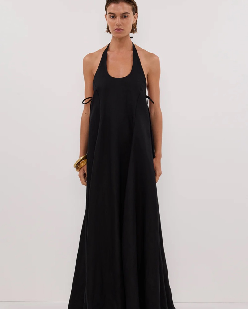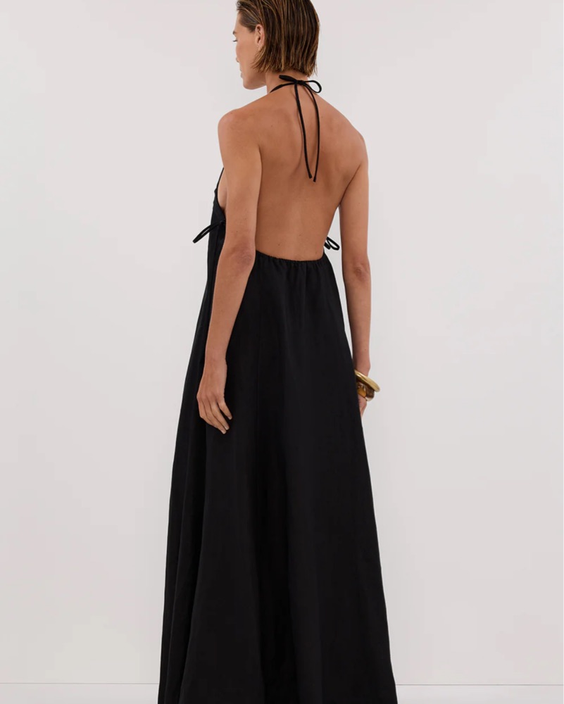 DISSH Abby Halter Linen Black Maxi Dress