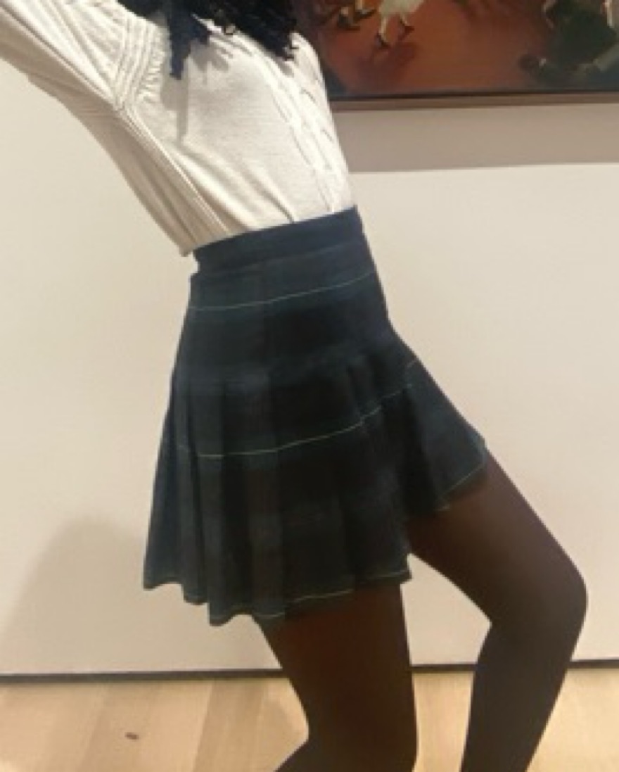 This stylish pleated plaid mini skirt is perfect for a fun day with friends. The classic plaid pattern adds a touch of sophistication to any outfit.
