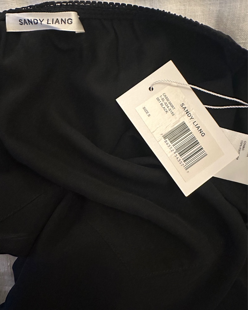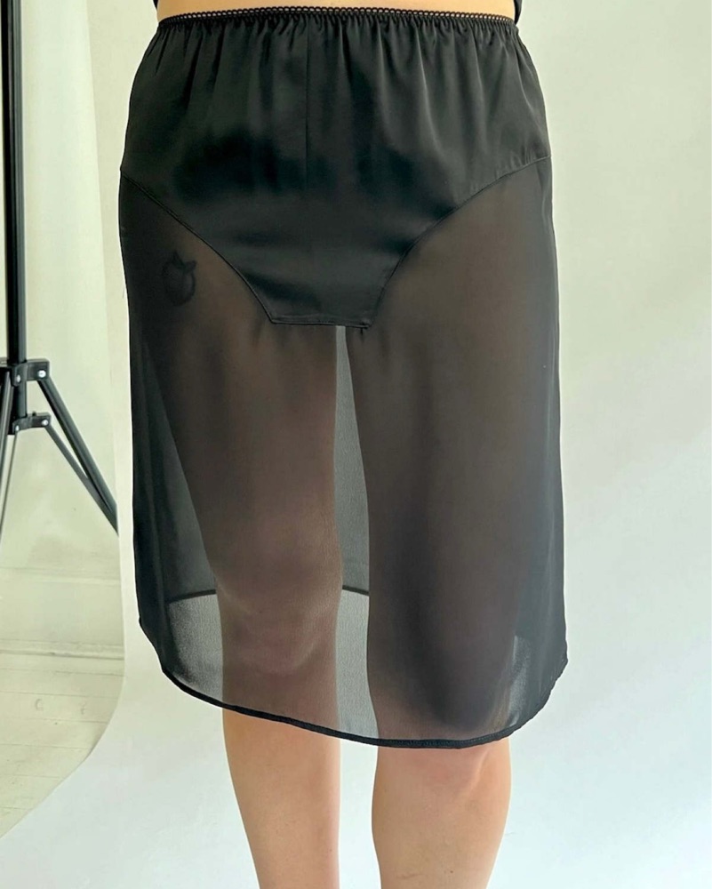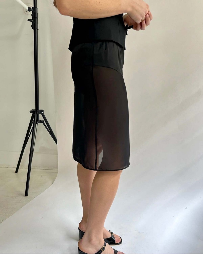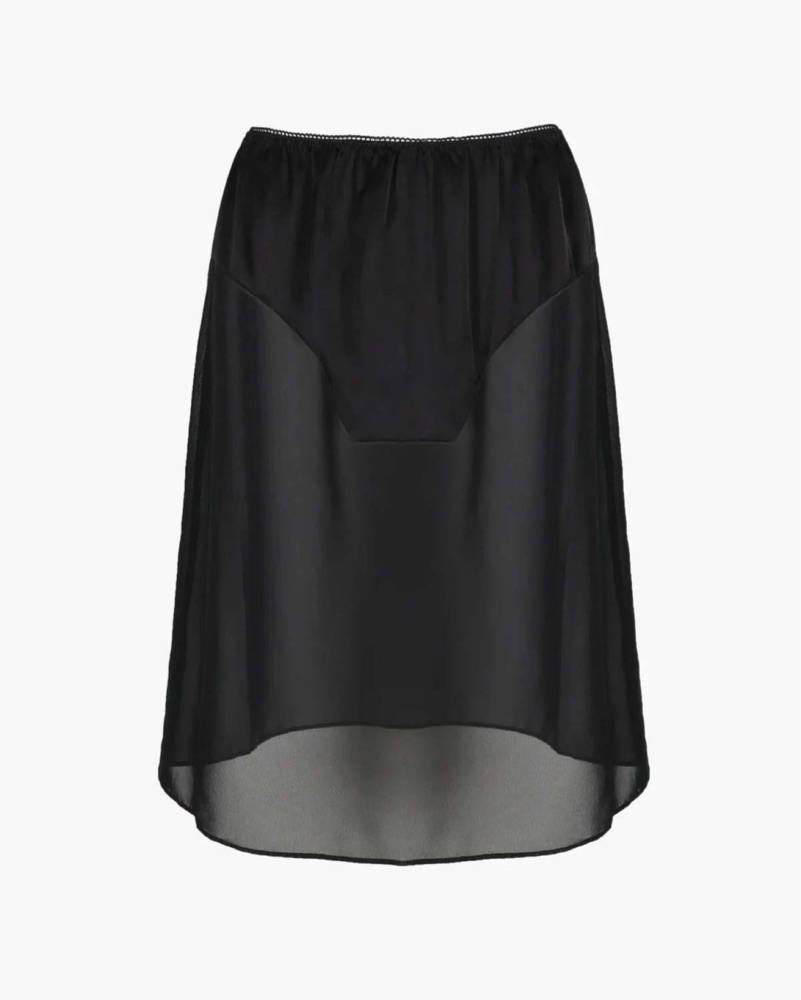 This eye-catching midi skirt from Sandy Liang is perfect for any occasion! The Cassi Skirt in Black is a midi-length sheer skirt featuring a paneled underwear detail at front and back and a scalloped waistband.