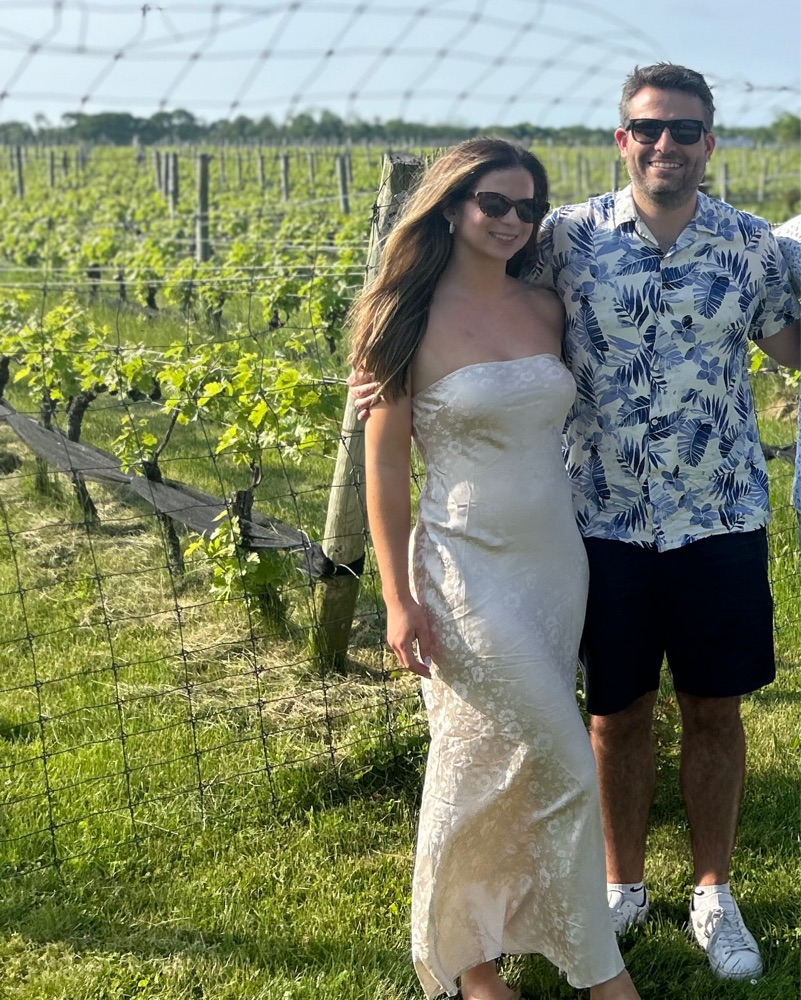 Champagne color. Only worn once, in perfect condition!