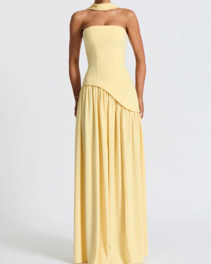 Corset Style Maxi Dress w Scarf Size S by BABYBOO - Pickle