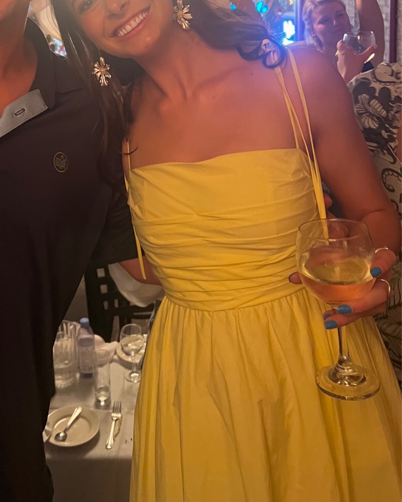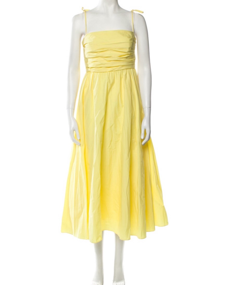 Great condition. Estimated item measurements: Bust: 32" Waist: 27.5" Hip: 44.5" Length: 44" Clothing Size: S Foreign Size: US 4 Fabric: 63% Cotton, 37% Polyester; Lining 82% Rayon, 18% Nylon Color: Yellow Gender: Women