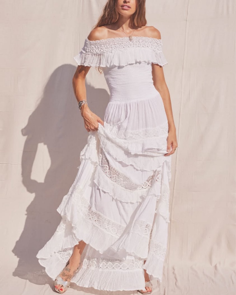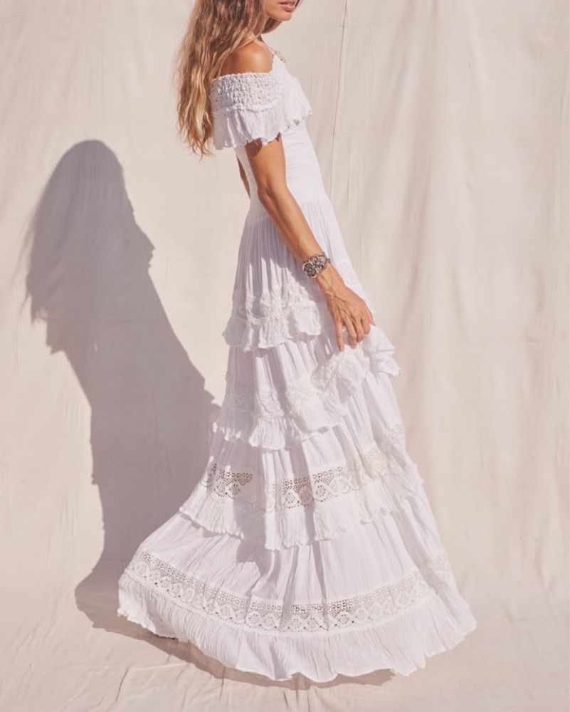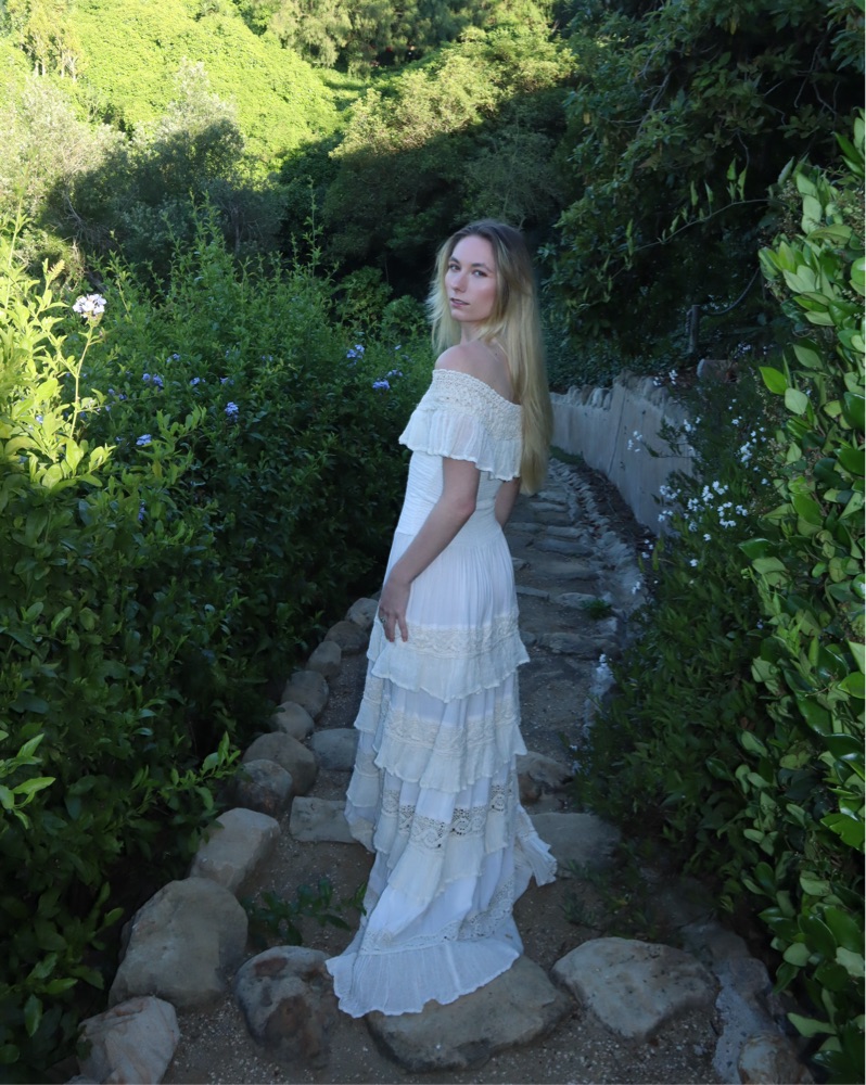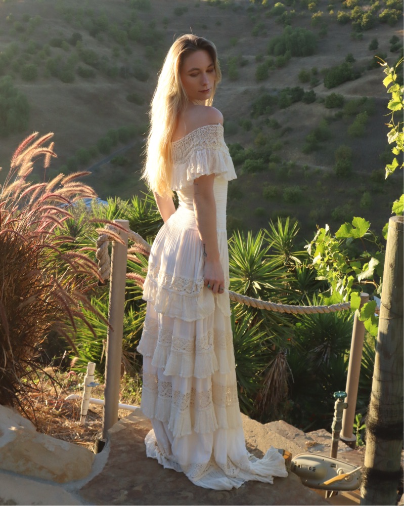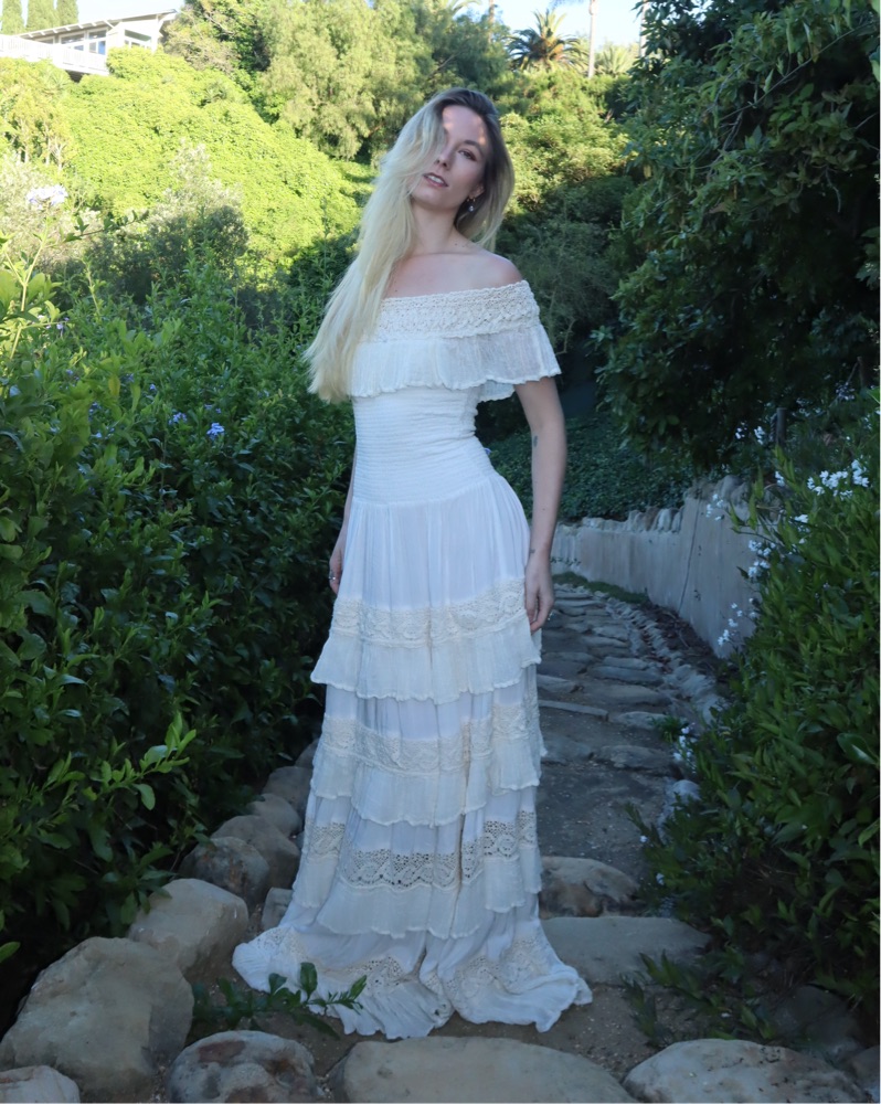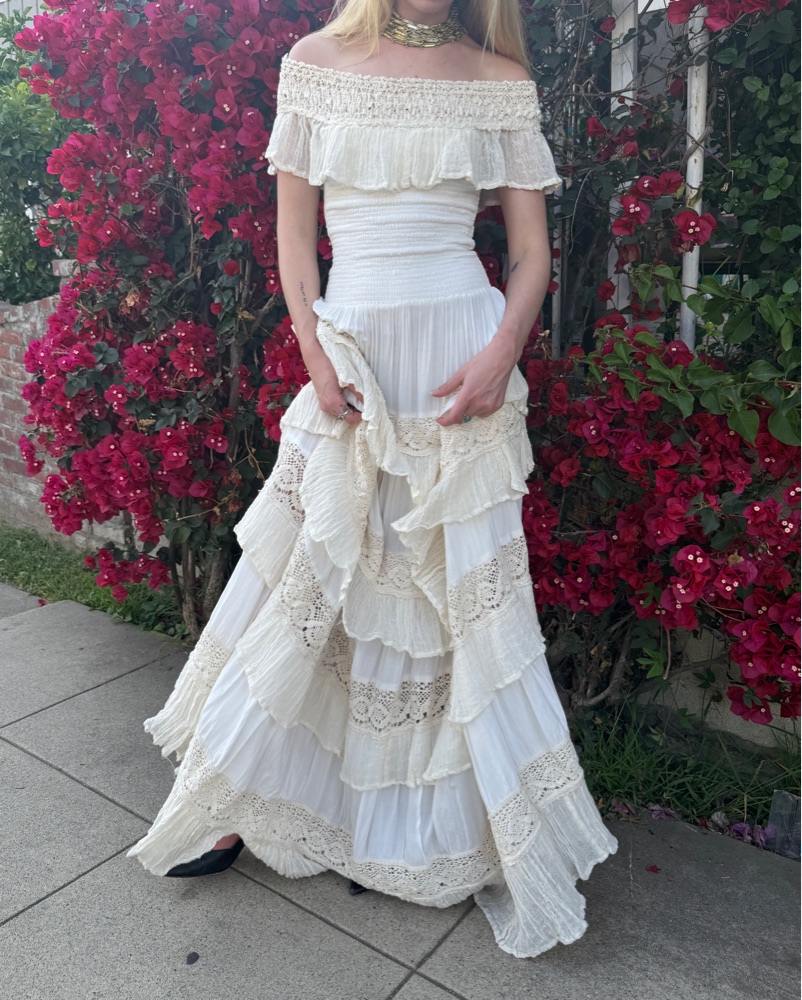 Jen’s Pirate Booty sold as a more casual wedding dress would be perfect for summer or beach weddings or engagements! Tiered floor length it’s very long best fits XS-S please nothing like tanner that can stain
