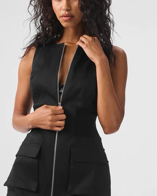 Form fitting and flattering zip up cargo dress. Has stretch and breathable fabric.