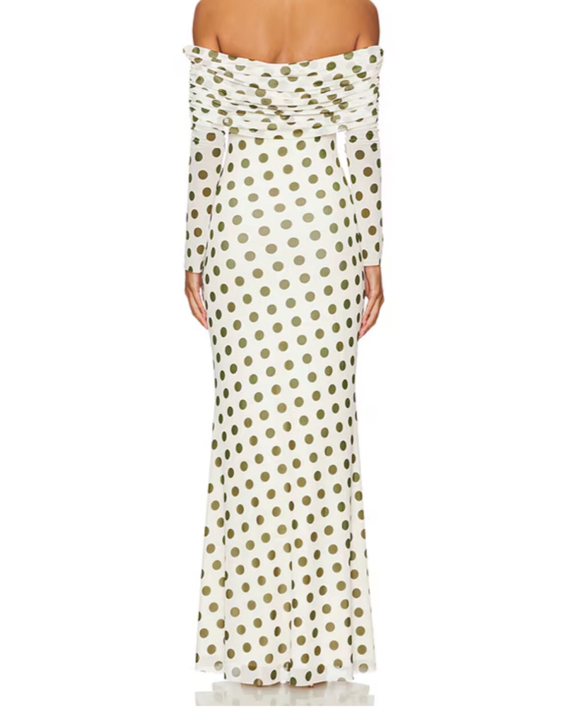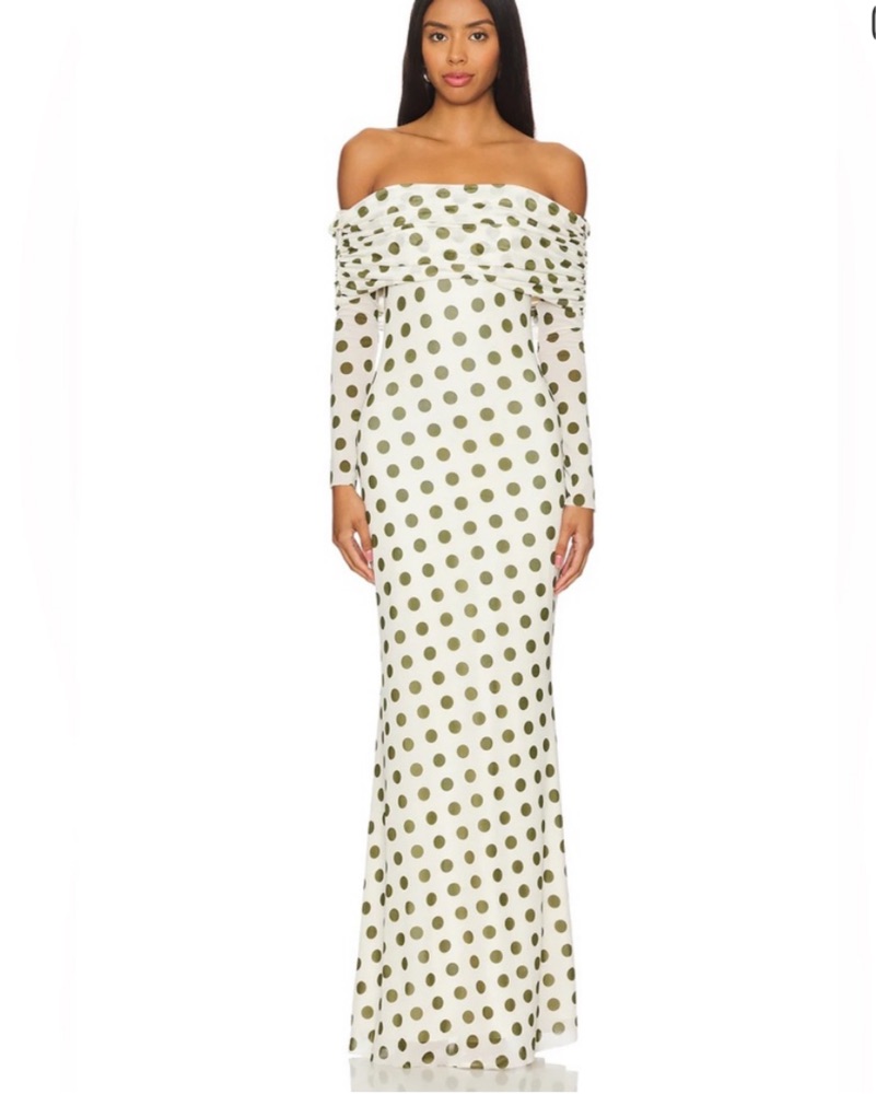 AFRM Thelma polka dot dress in beige and green. Size medium. Most comfy and flattering dress!