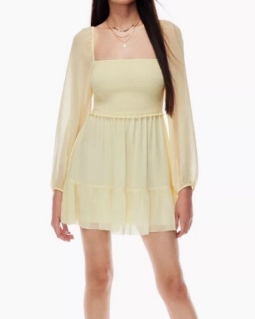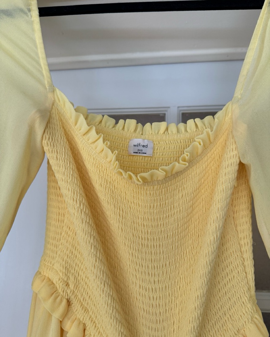 Pale yellow Aritzia dress. Size XXS but fits closer to a small since upper part is stretchy