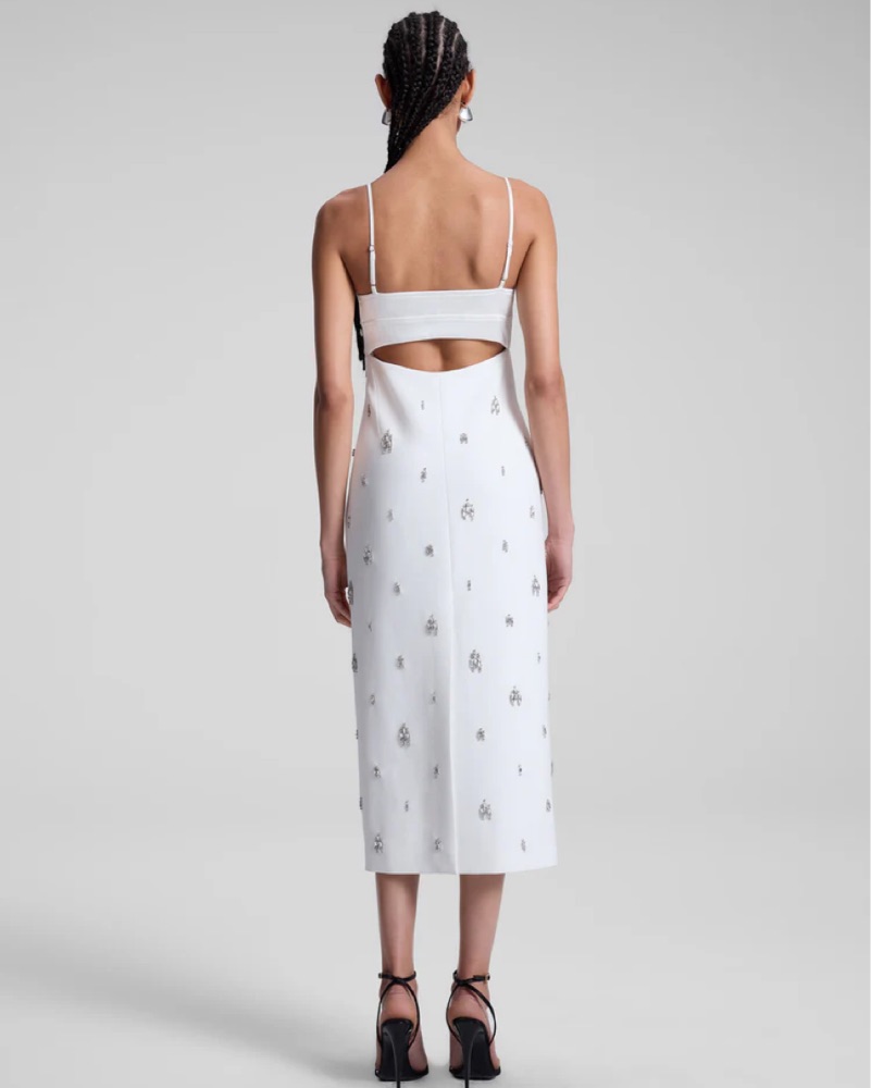 Brand New. Tags On. Never Worn. A.L.C. Alana Embellished Midi Dress. Color: White. Size: 4.