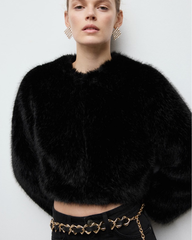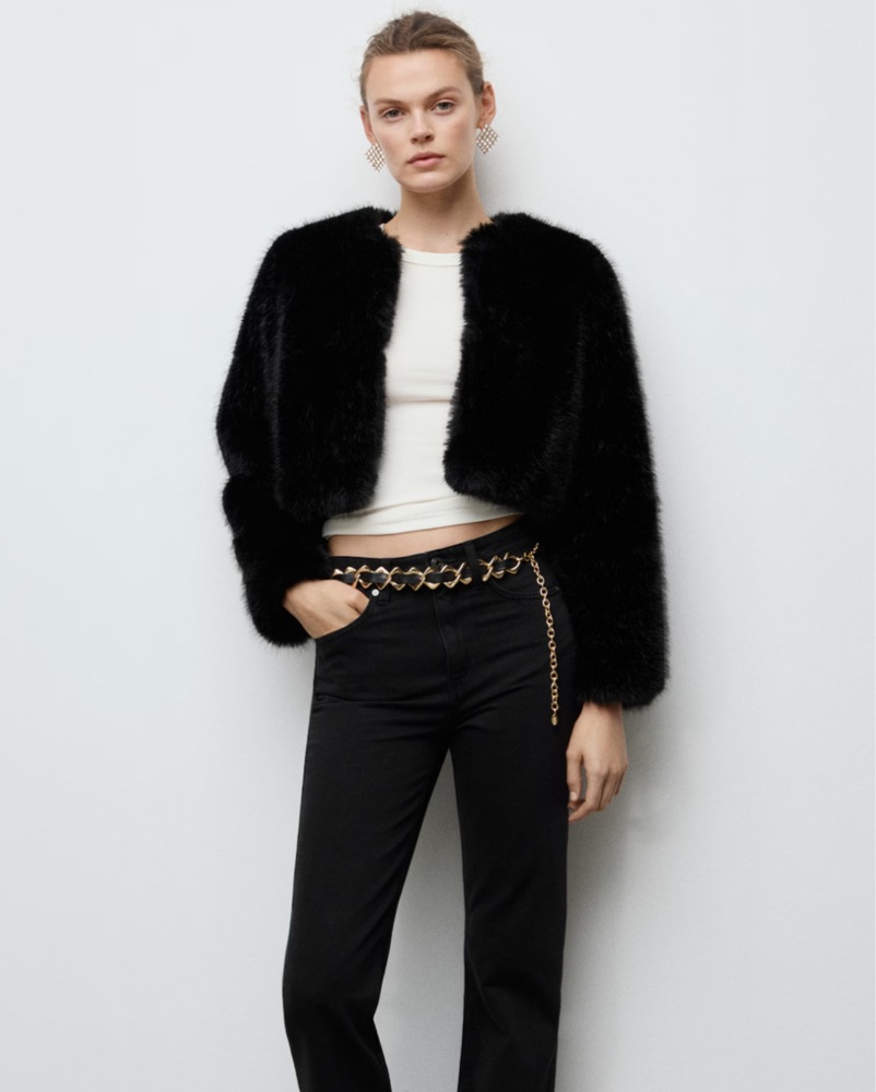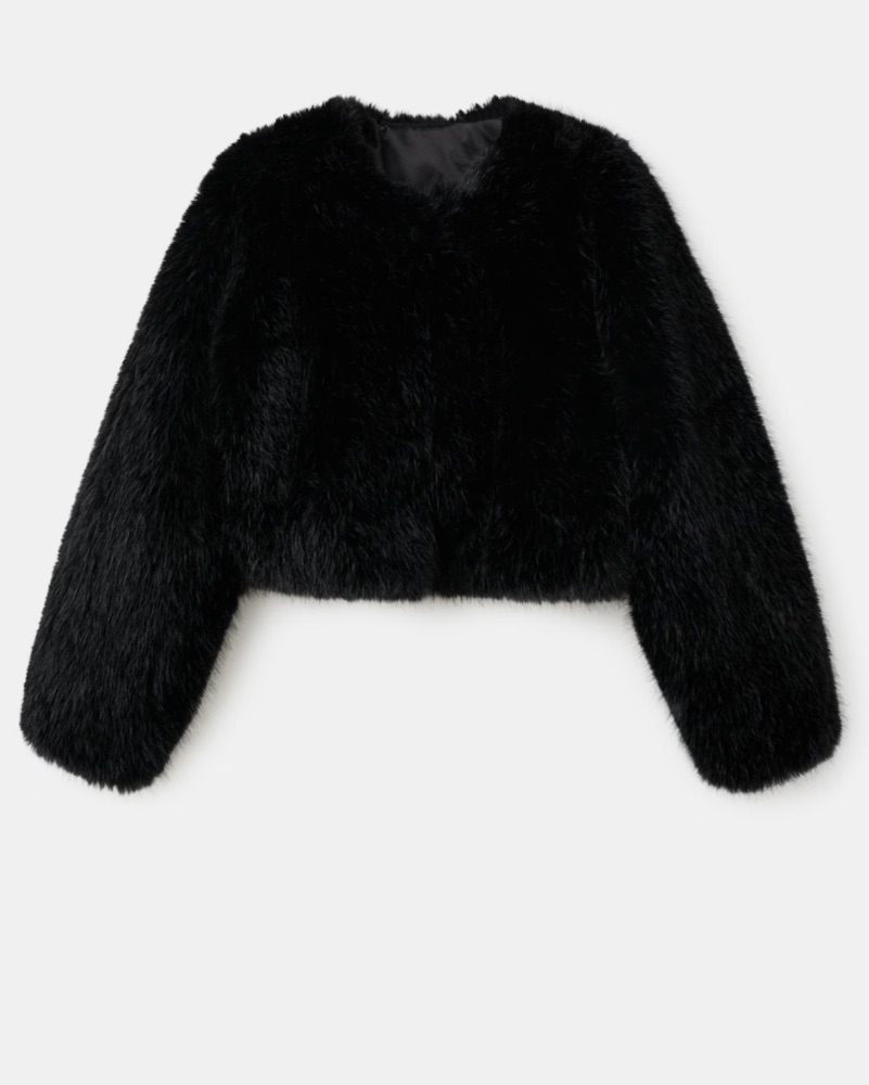 Black Faux Fur Cropped Jacket by MANGO - Pickle