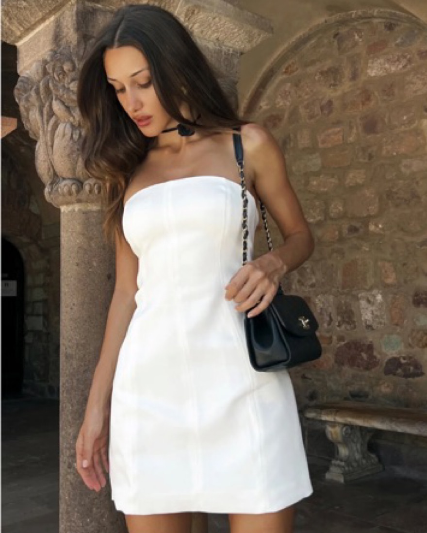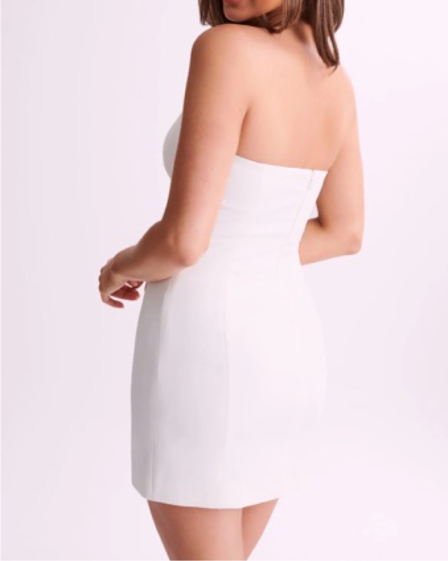 Most flattering strapless mini dress!! The back has a zipper and it is the perfect length! My friends and I call this “the sisterhood of the traveling dress” because it is such a good fit on us all