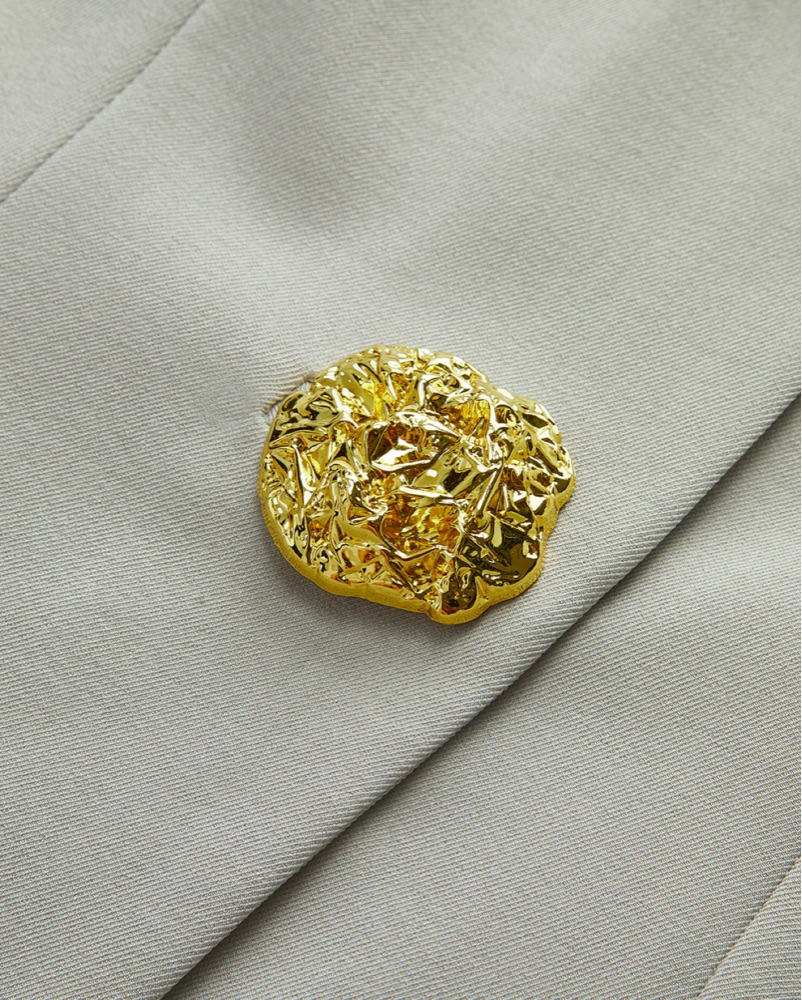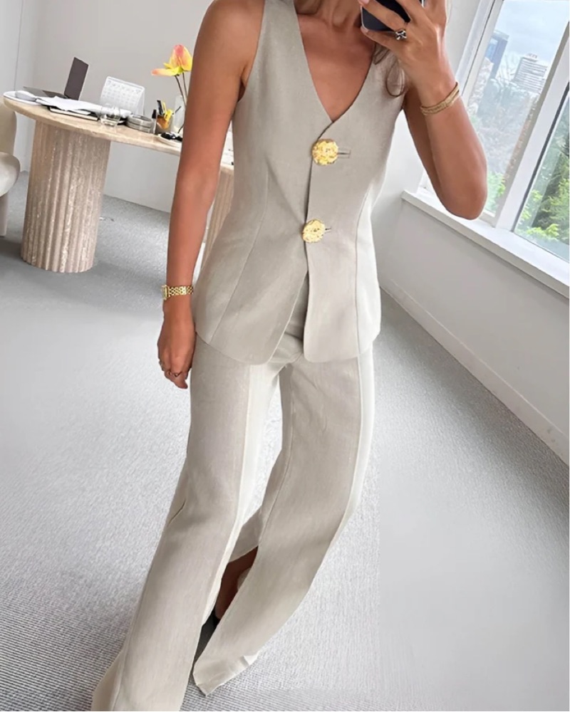 cutest suit set from commense! pants are flattering and have a split seam on the inside. gold buttons make it looks so classy! wore this for a few medical work conferences and everyone loved it!