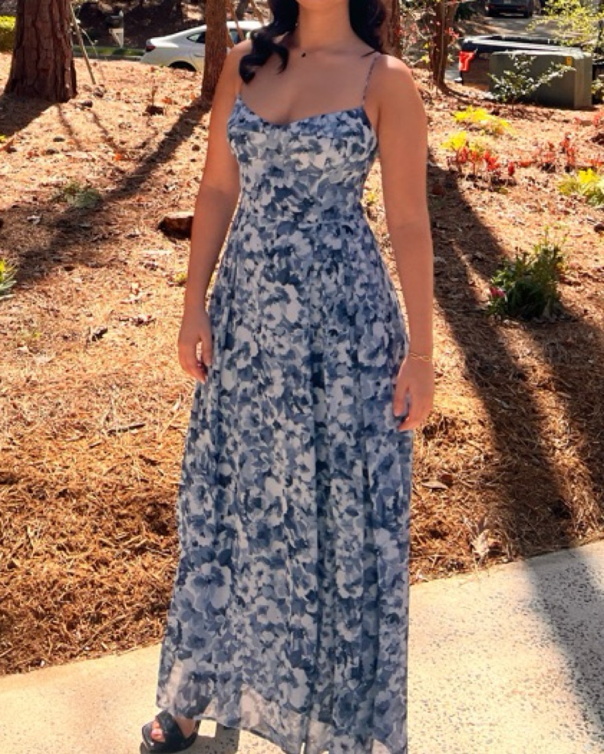Open to negotiation. Worn once. Super cute dress - perfect for a wedding guest. Full length on me because I’m 5’2. Would hit at ankle for a taller person. Bodice with an A-line skirt.