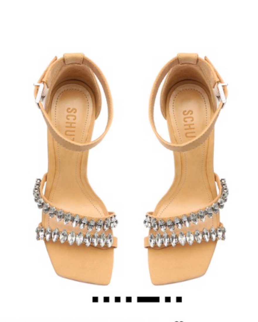 SCHUTZ rhinestone heels. Worn once. Elevate your look with these stunning Linsey Nubuck Sandals. The jeweled straps add a touch of glamour perfect for special occasions.