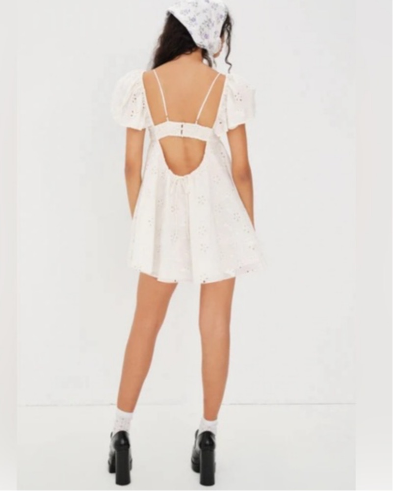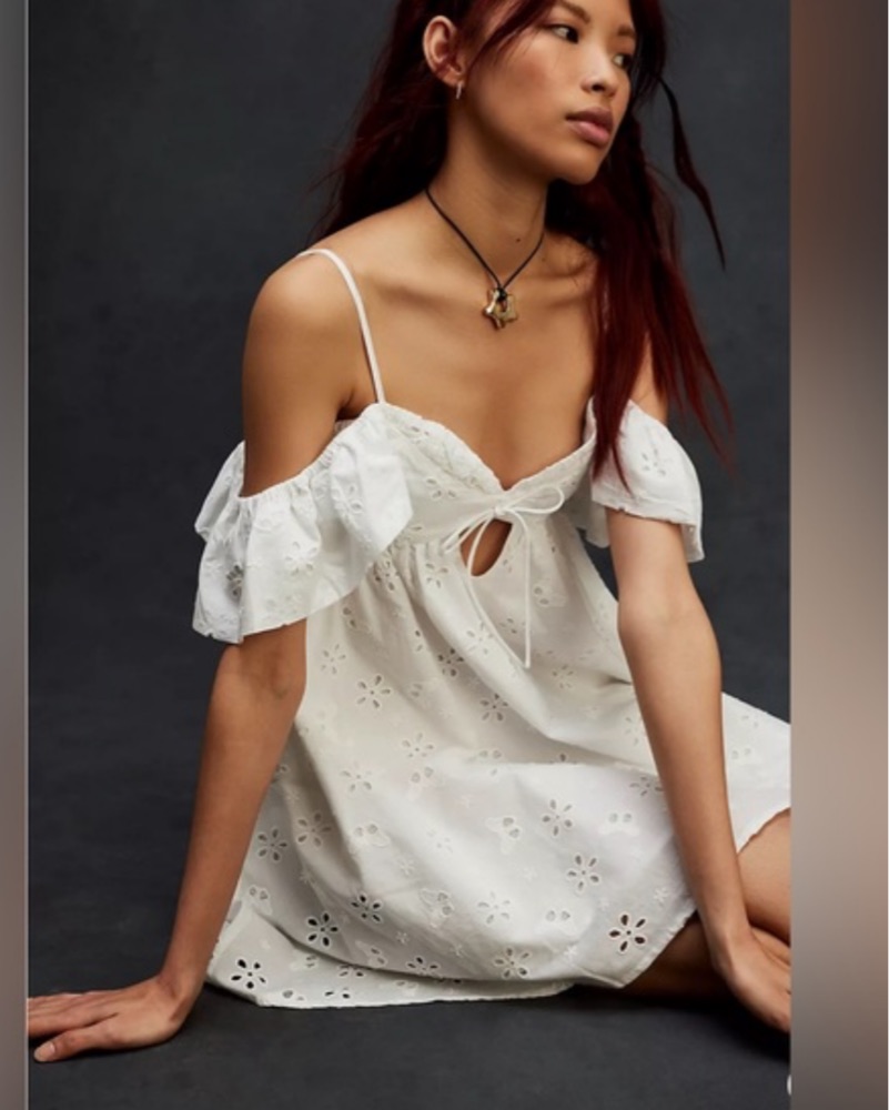 White Eyelet Keyhole Dress