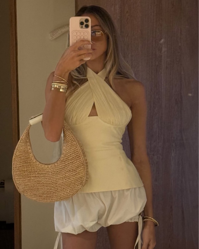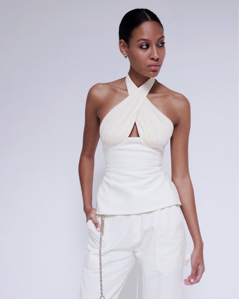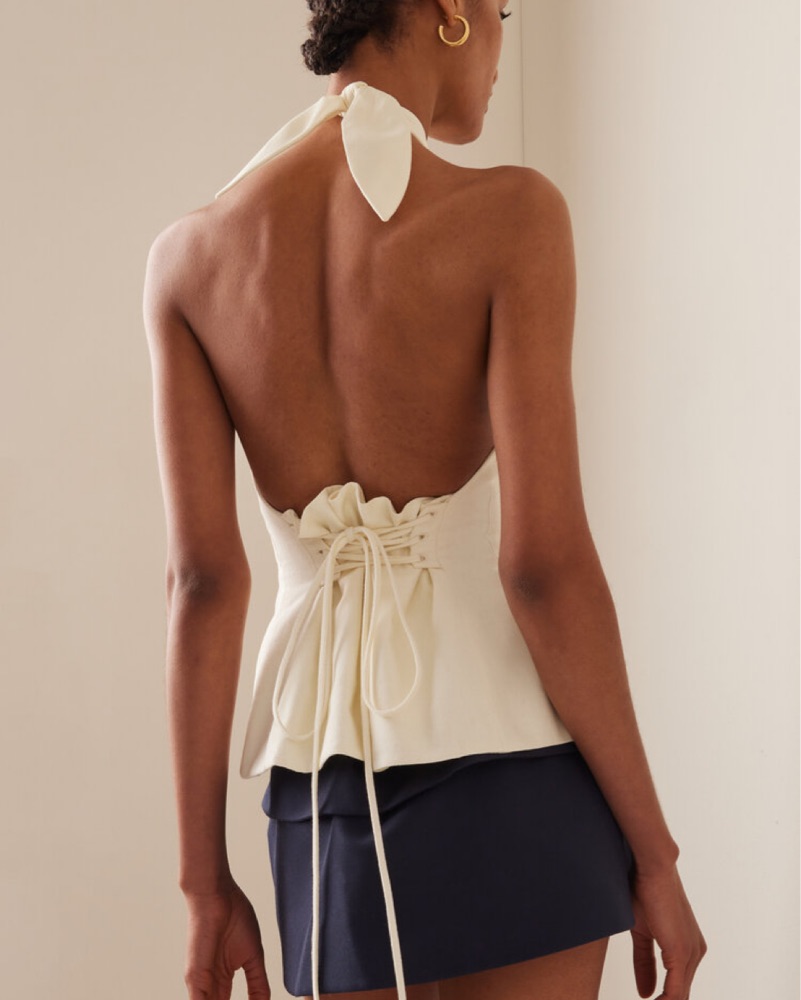 Inspired by a vintage halters from the 30's, the 'Sculpted' top is made from double-lined cotton with a silk-chiffon bust. The lace-up back allows for an adjustable fit. Size S. Worn once. Perfect condition.