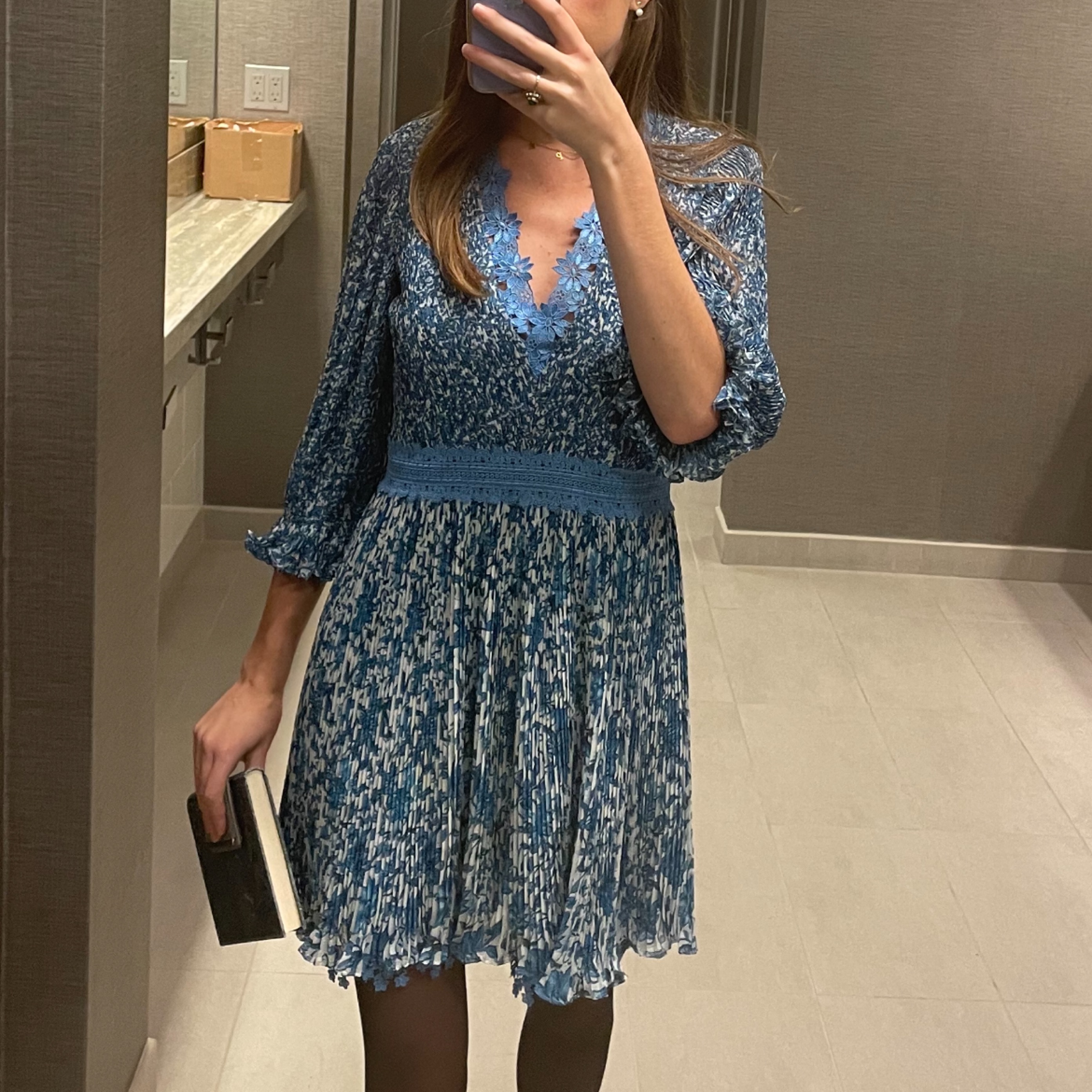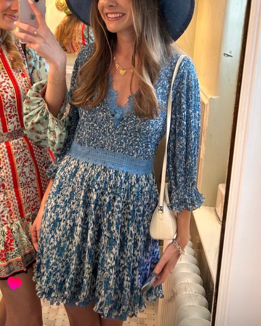 Alice & Olivia Pleated Blue Floral Dress