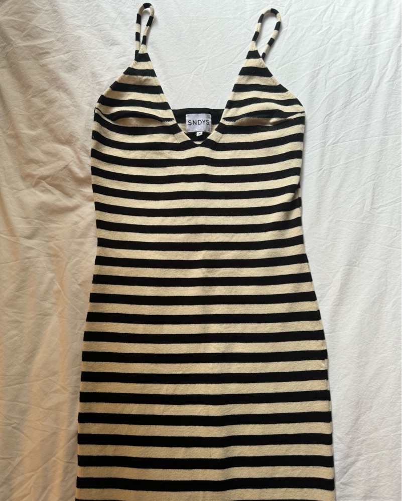 This chic striped maxi dress by SNDYS is perfect for a summer night out. The flattering fit and bold stripes create a stylish, eye-catching look.