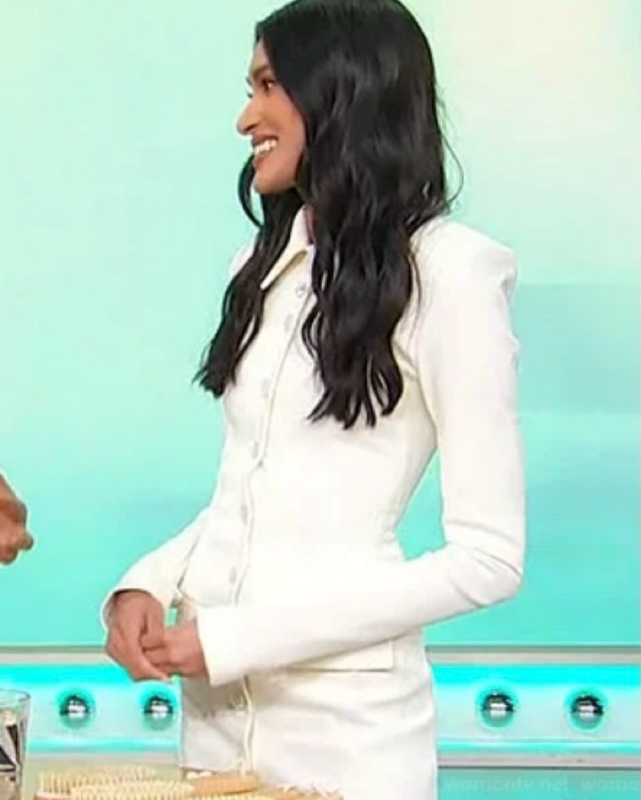 This versatile white blazer dress is perfect for a sophisticated evening event or a stylish day at the office. This is in WHITE