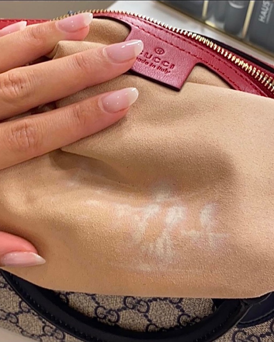 Interior is micro fiber lining, there is minor discoloring on lining, photos show stain. Other than that there is no visible wear to the bag. I no longer have the box or dustbag so it will be sent in another designers dust bag.