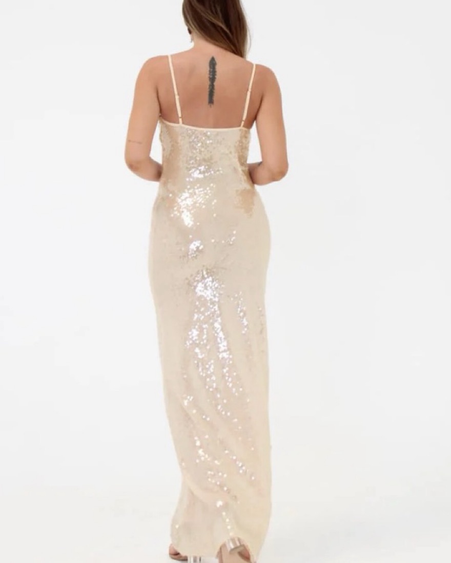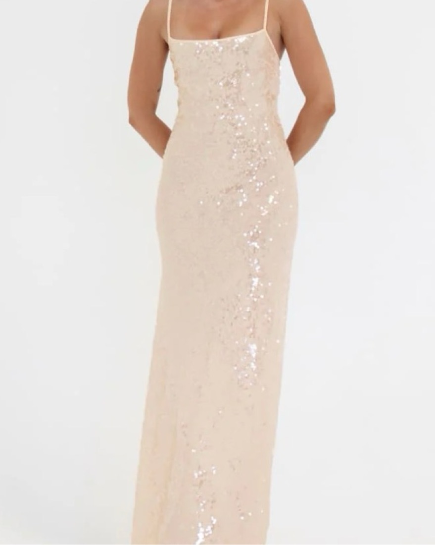 Cream Vintage Sequin Slip Dress by Rumored effortless statement piece for any party