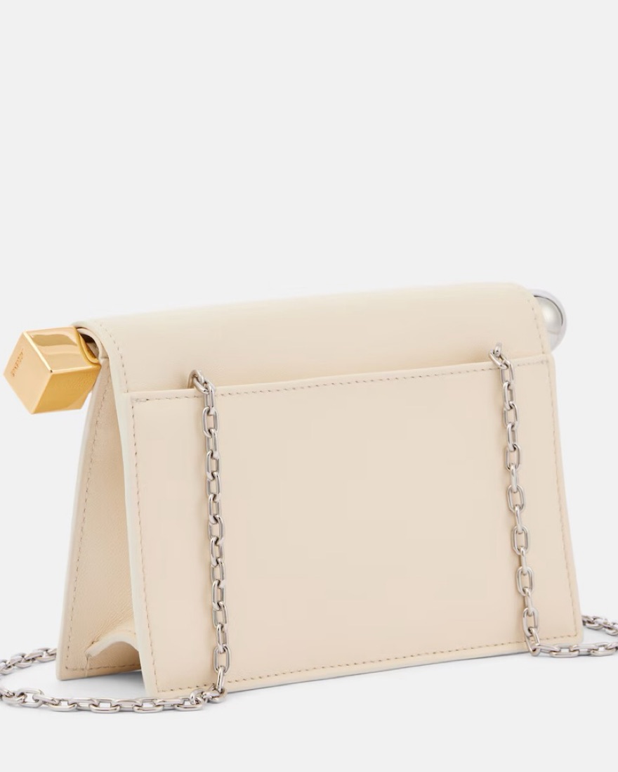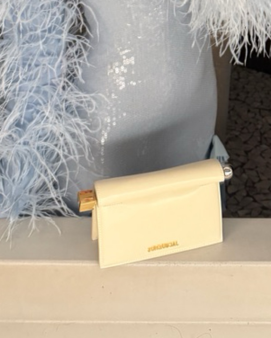 Authentic Jacquemus clutch. 100% Lambskin cream leather. Silver and gold hardware .