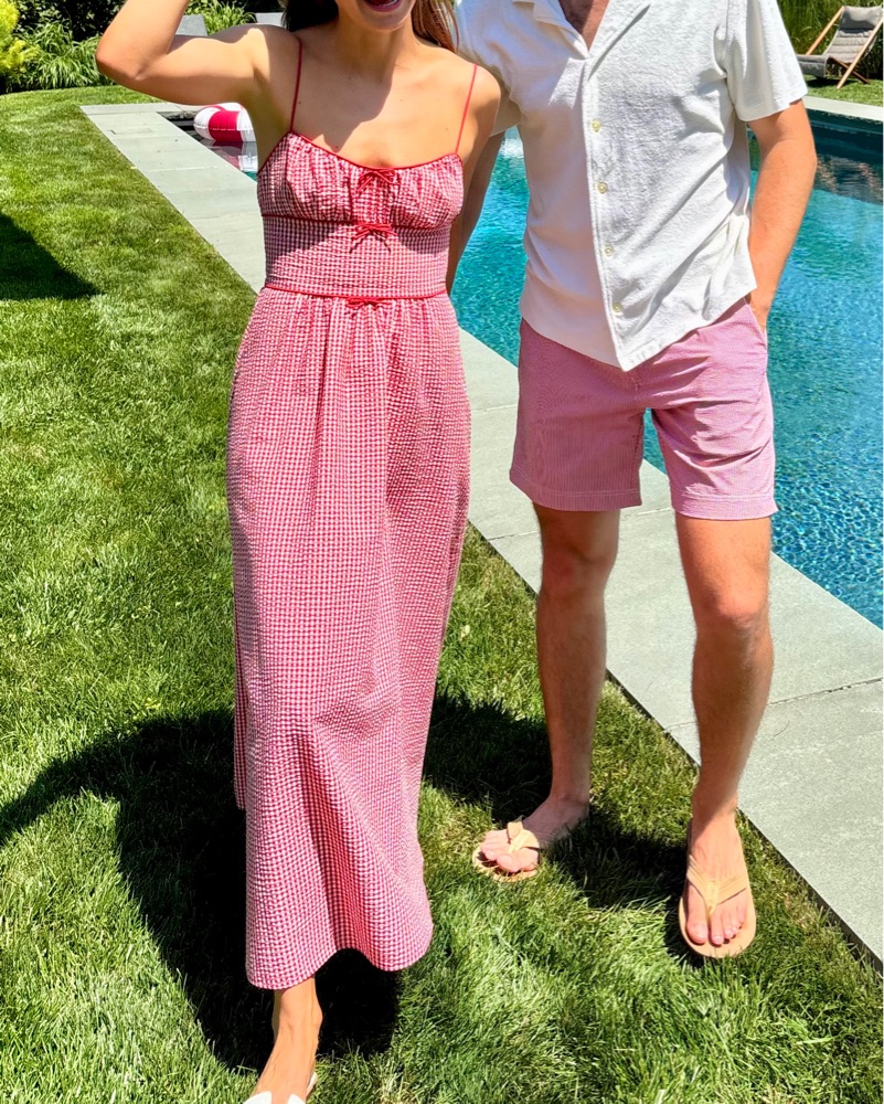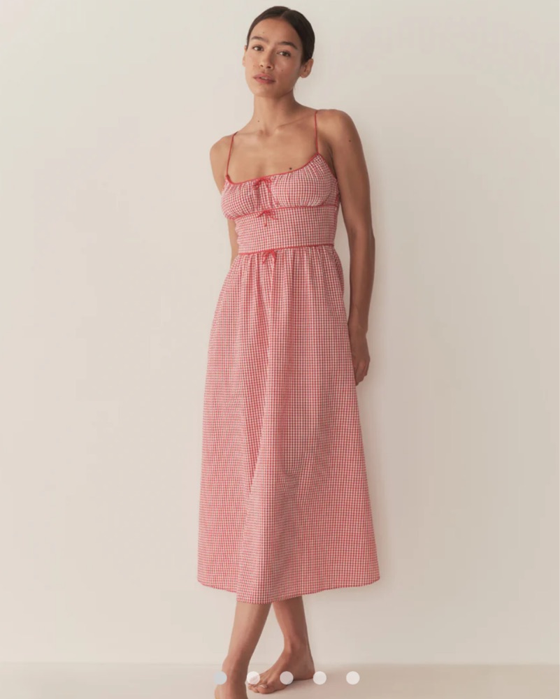 BELLINE DRESS. Worn once, perfect condition. In crisp, lightweight cotton seersucker, the Belline Dress features a square neckline and ultra-skinny spaghetti straps. A fitted bodice with an invisible side zipper gives way to an ankle-grazing A-line skirt with a single tier.
