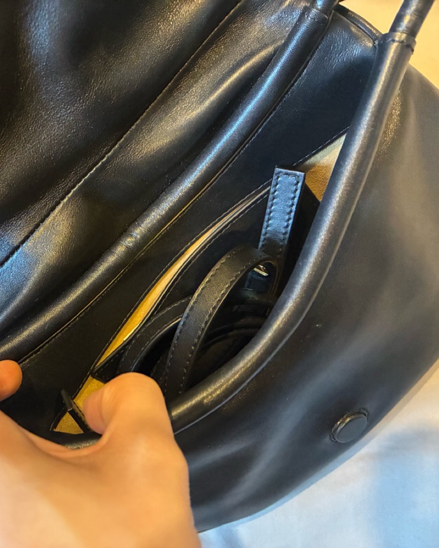 Nappa leather bag w/ suede interior, comes with a crossbody strap