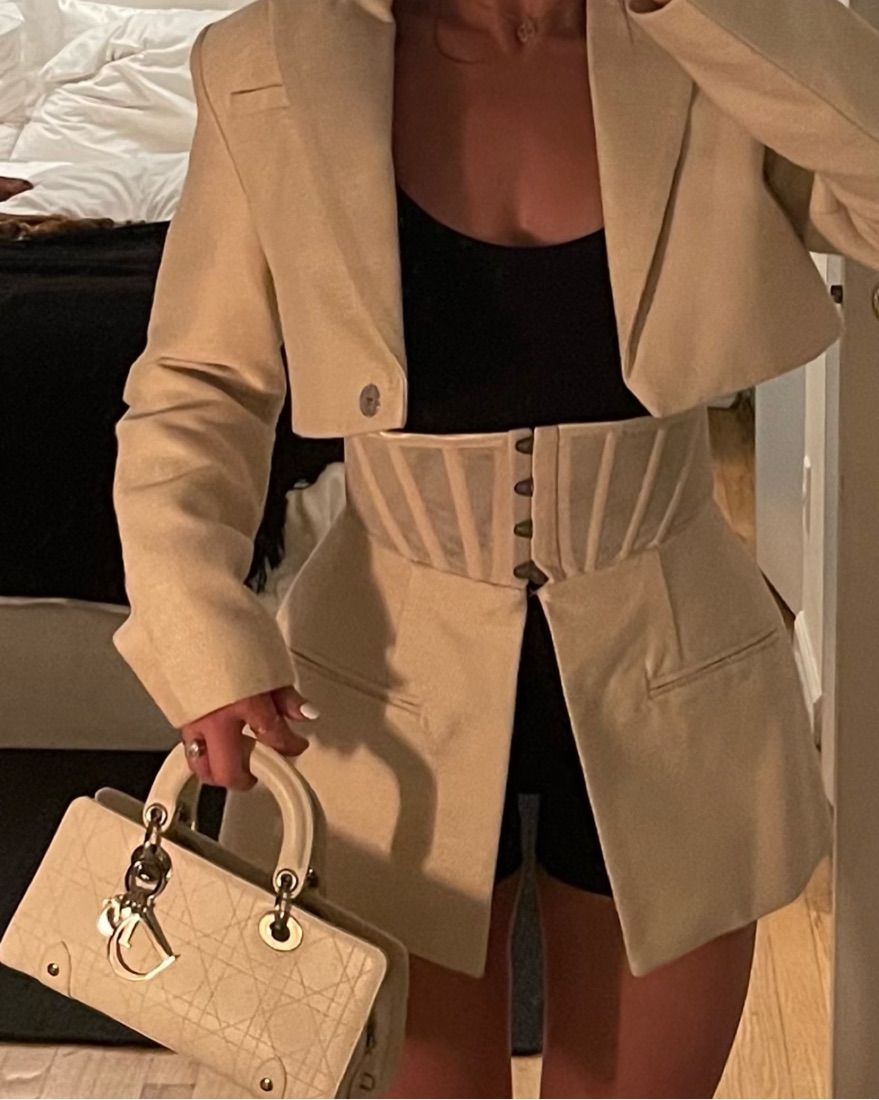 Two piece cropped blazer and belted skirt from ACLER size xs