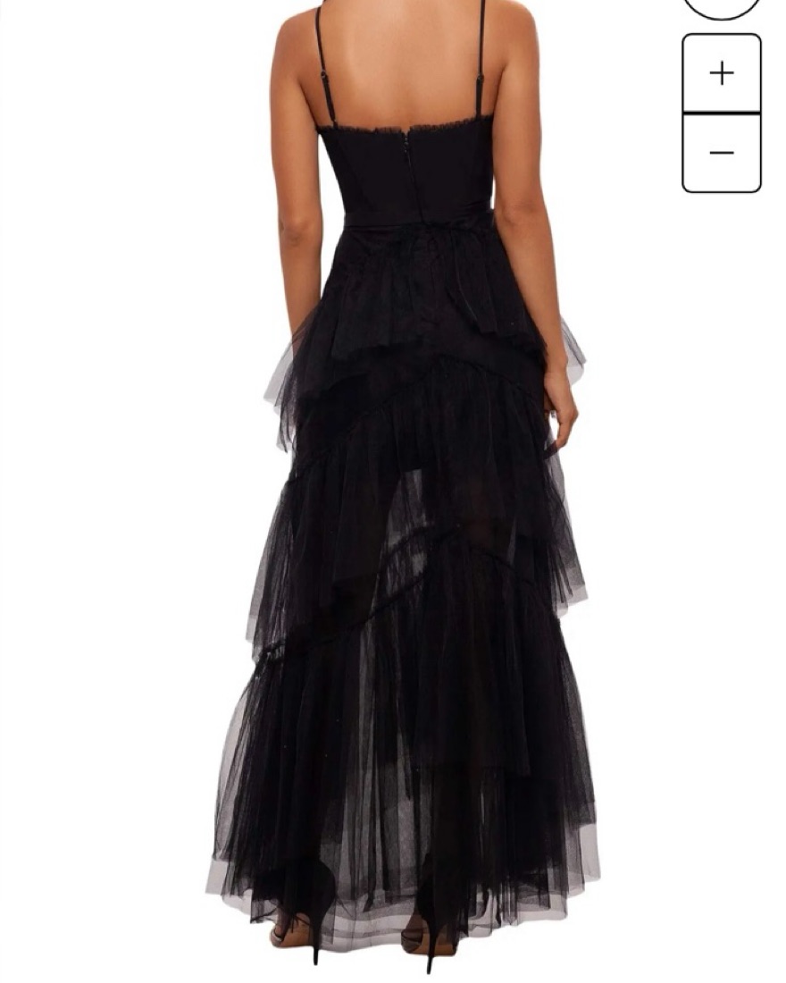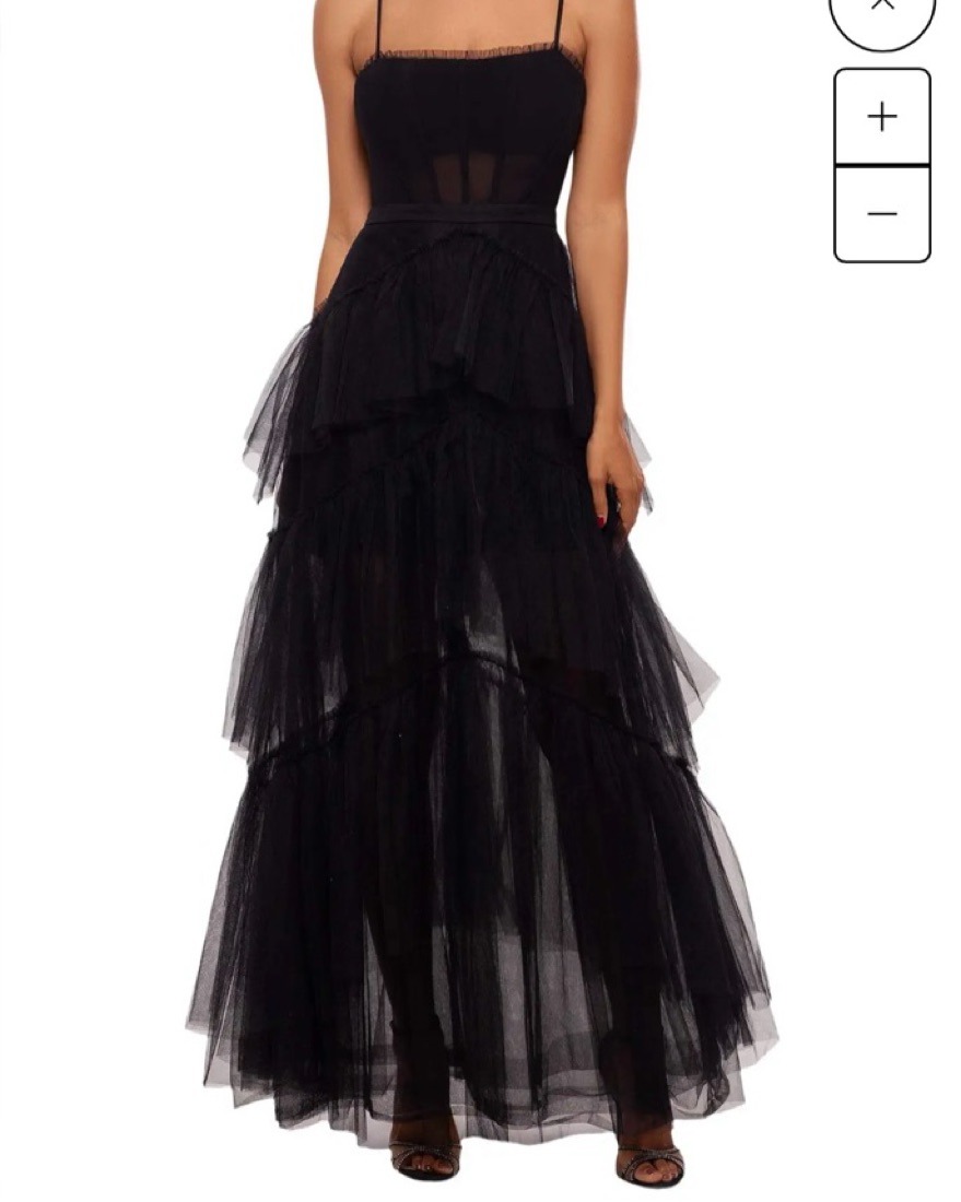 Excellent condition. Very similar to the BCBG Tulle Corset Dress! I’m 5’3” and wore this with 3” heels and it was the perfect floor length! Super comfortable and has adjustable straps. Fits TTS.