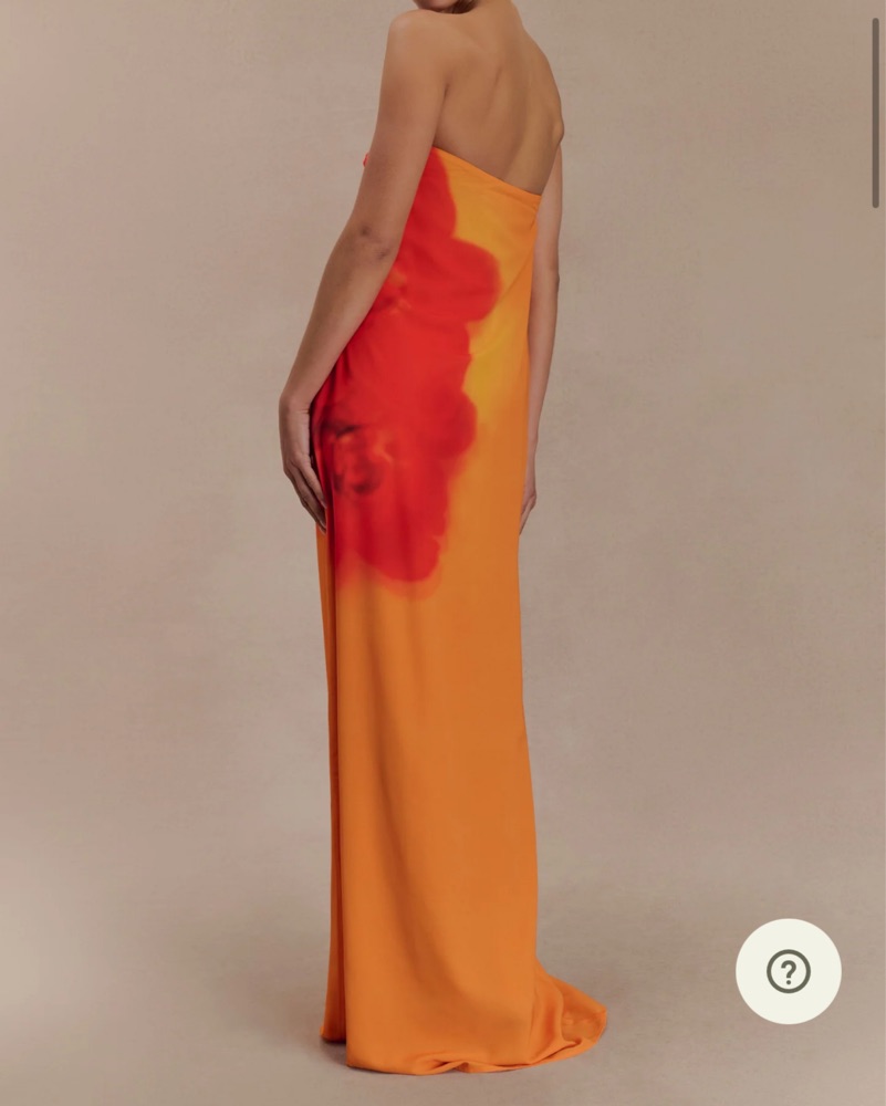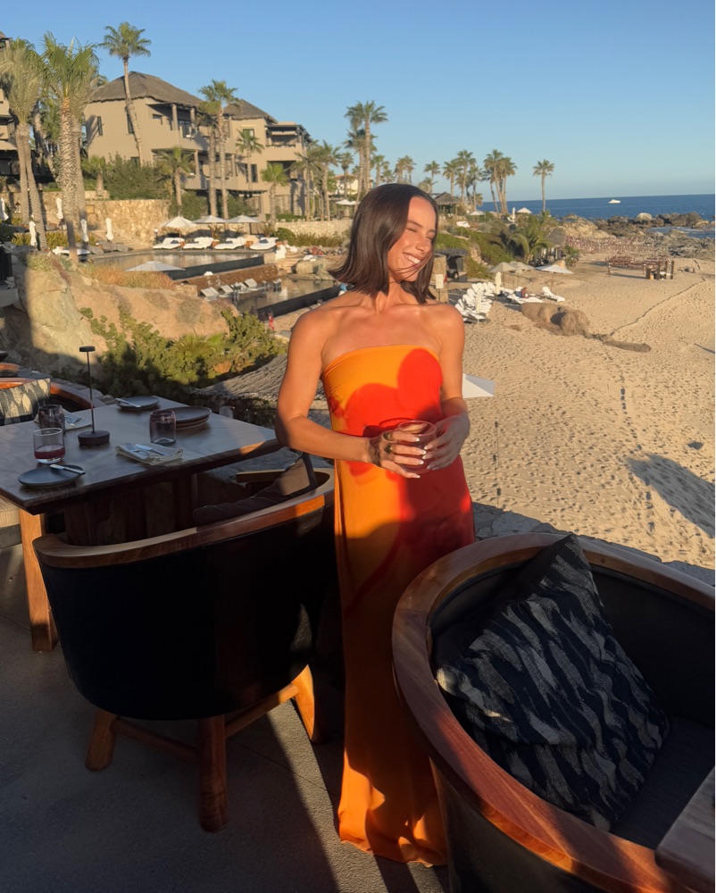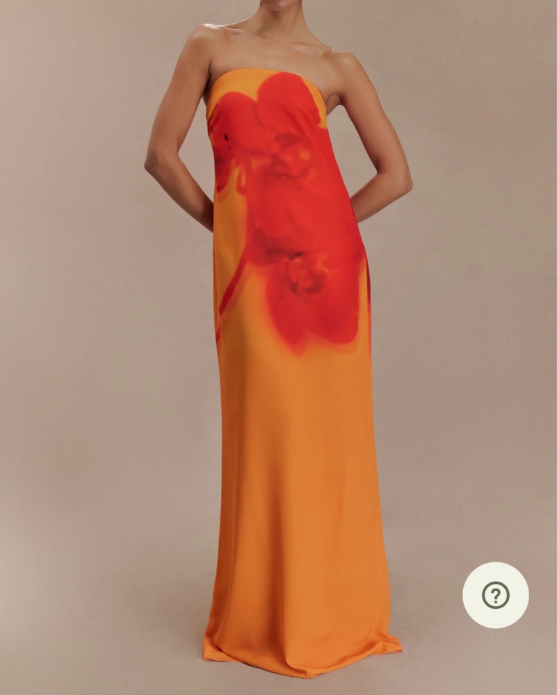 This stunning maxi dress is perfect for a beach vacation or special event. I’m 5’2 so it’s hemmed floor length for me + a few extra inches for heels. Super flattering cut!