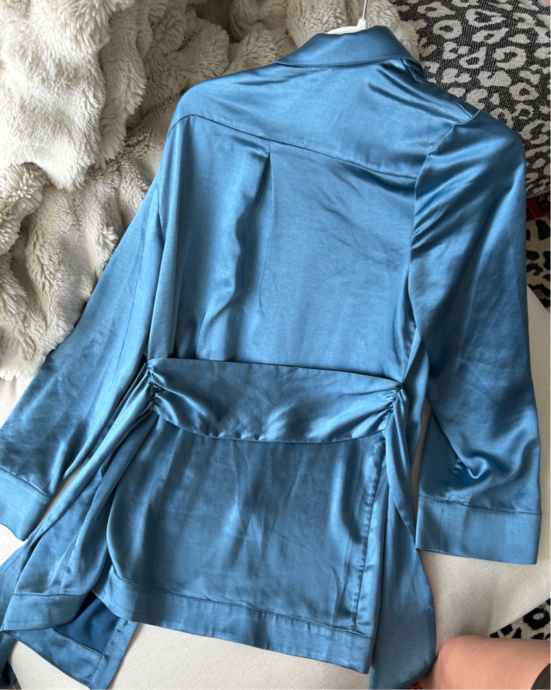 This luxurious satin dress is perfect for a night out or a special occasion. The vibrant blue color and flattering silhouette make it a stylish and versatile choice. Excellent condition with tags still on :)