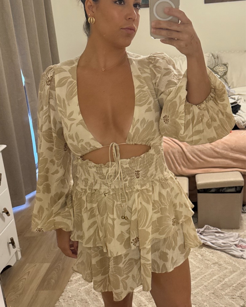 Stylish and feminine floral mini dress with puff sleeves. Perfect for a summer day or night out.