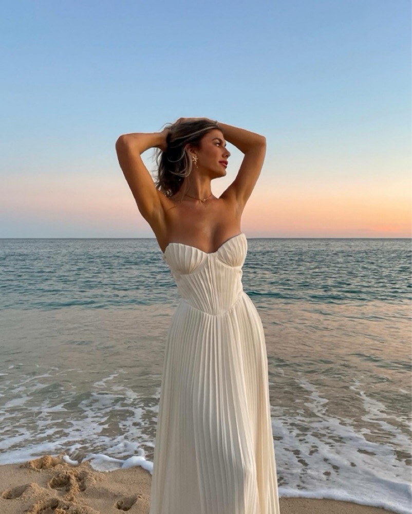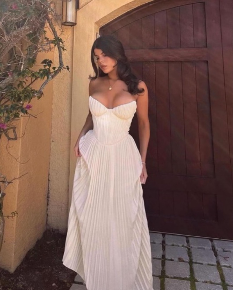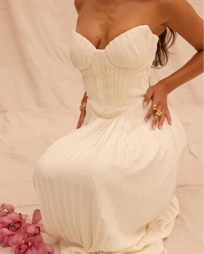 House of CB AMORATA Ivory Pleated Maxi Dress in size XS