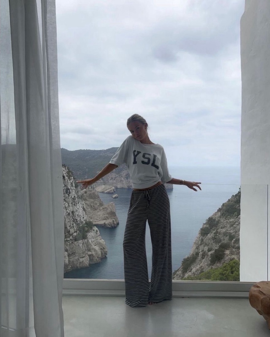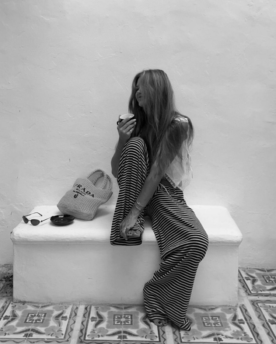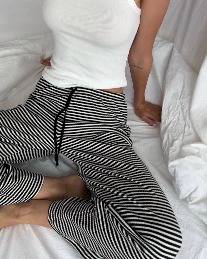 Not sold anymore. Size S/M. Black and white thin stripe ribbed knit resort lounge trouser pants.