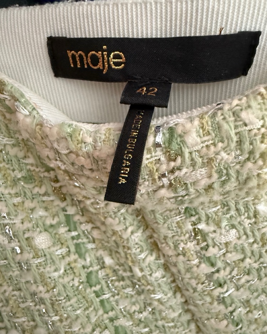 Maje light green with metallic detail tweed mini dress maje size 42 fits a size medium