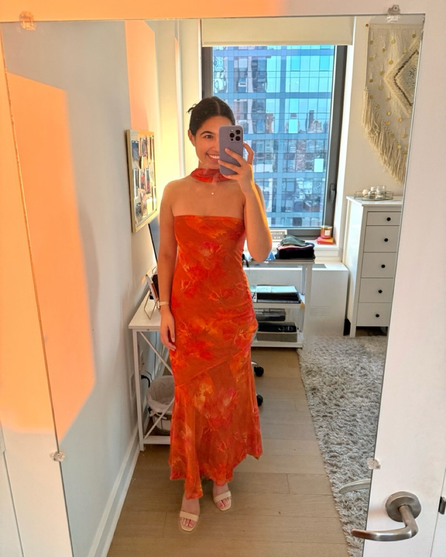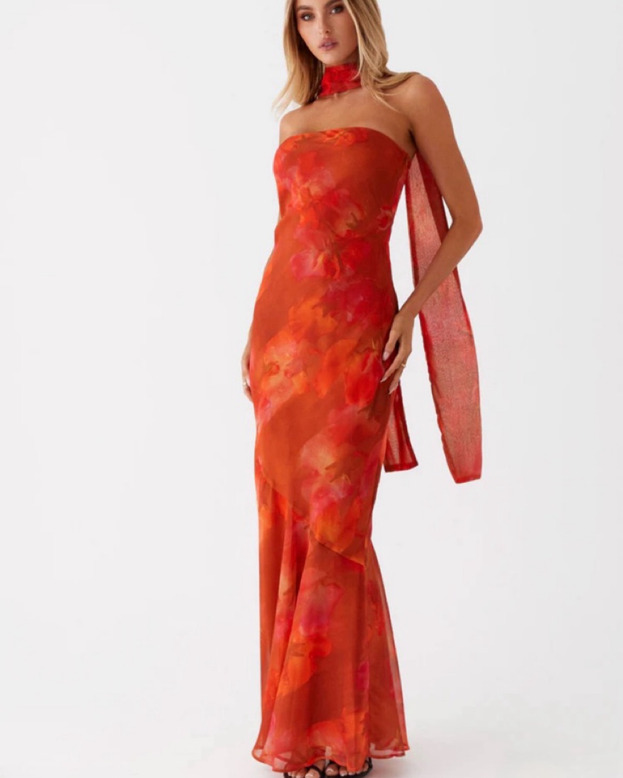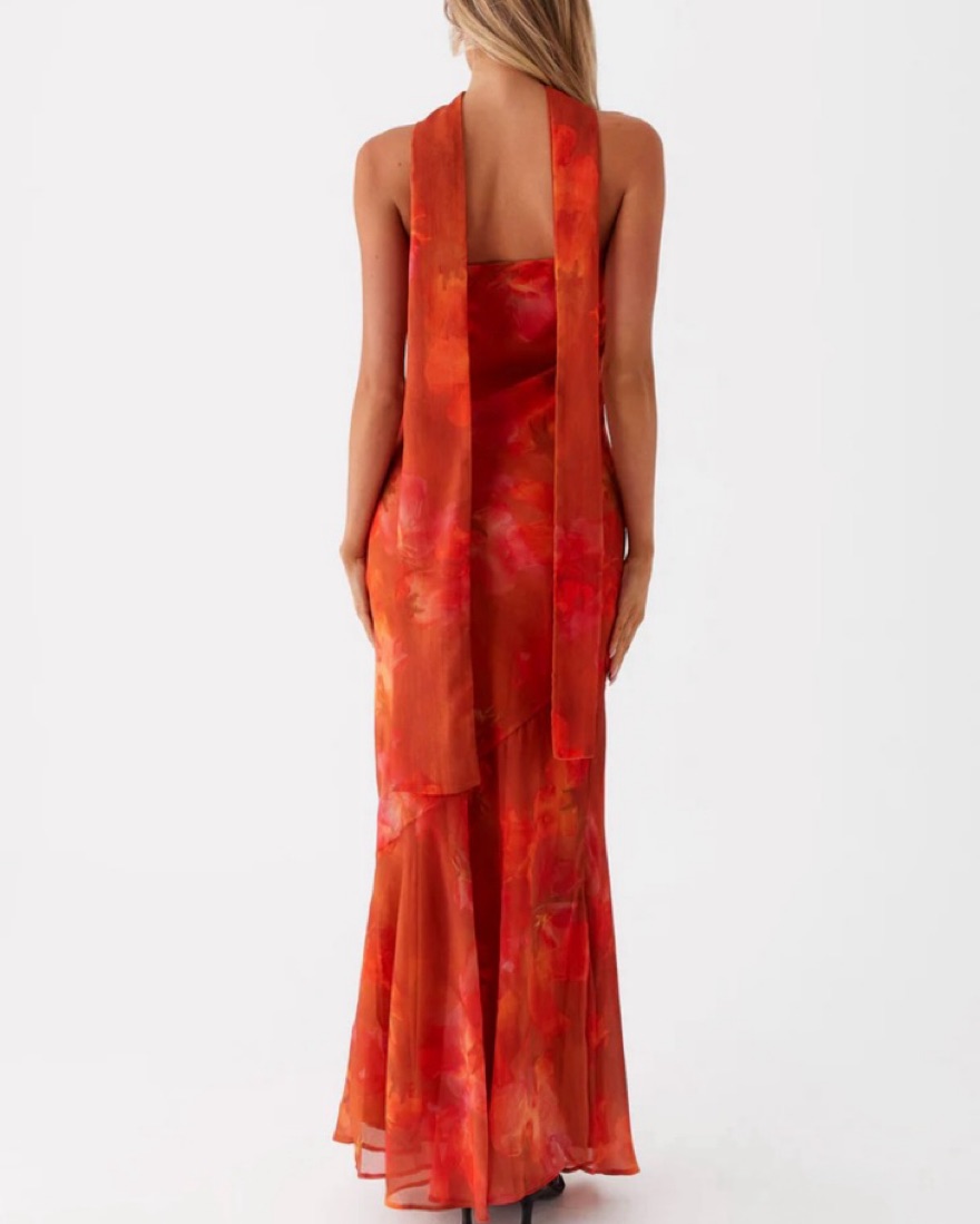 This stunning floral gown is perfect for a formal event, beach trip, or wedding! I wore it once to a black tie wedding in Palm Beach and truly have never gotten more compliments on a dress EVER🧡