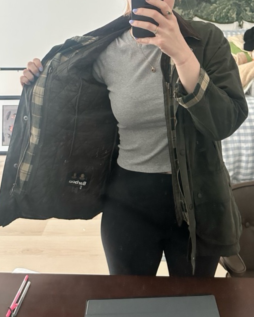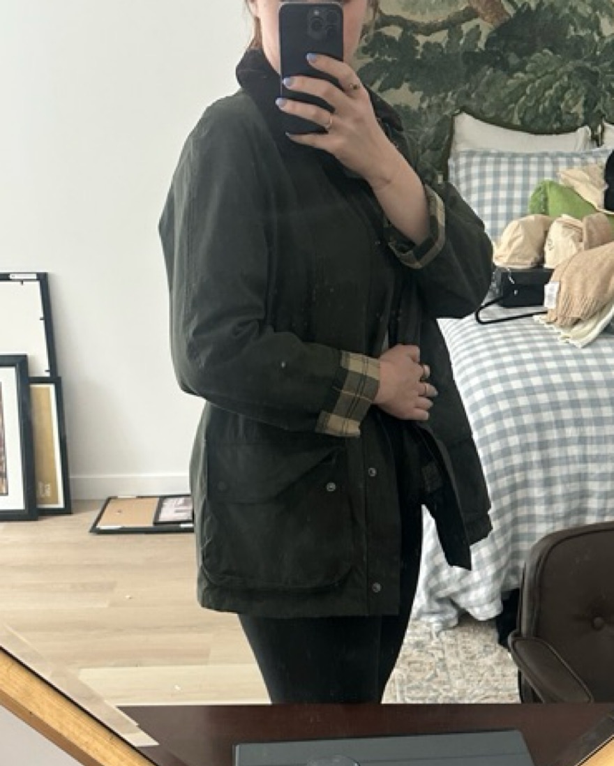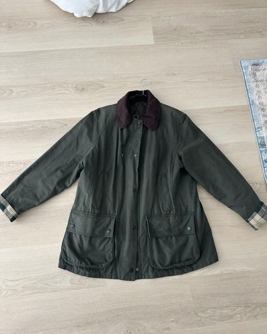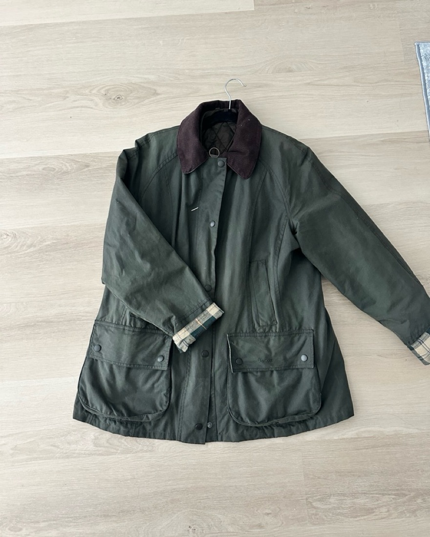 This stylish waxed cotton jacket is perfect for a range of occasions, from brisk walks in the to casual outings. Great for trips to England, Ireland and Scotland! Lining on the inside can be removed. US 12, UK 16, Fits a M/L