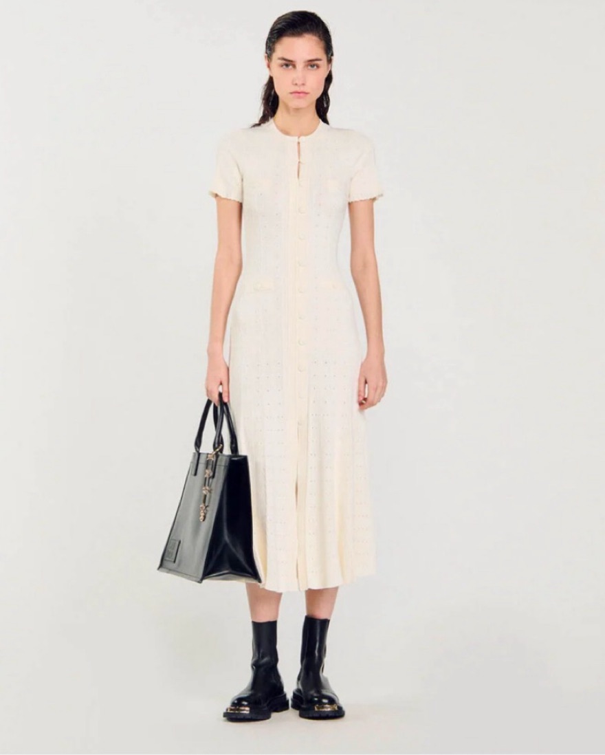 Elegant Cream Midi Dress - Sandro by Sandro - Pickle