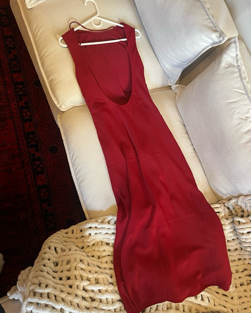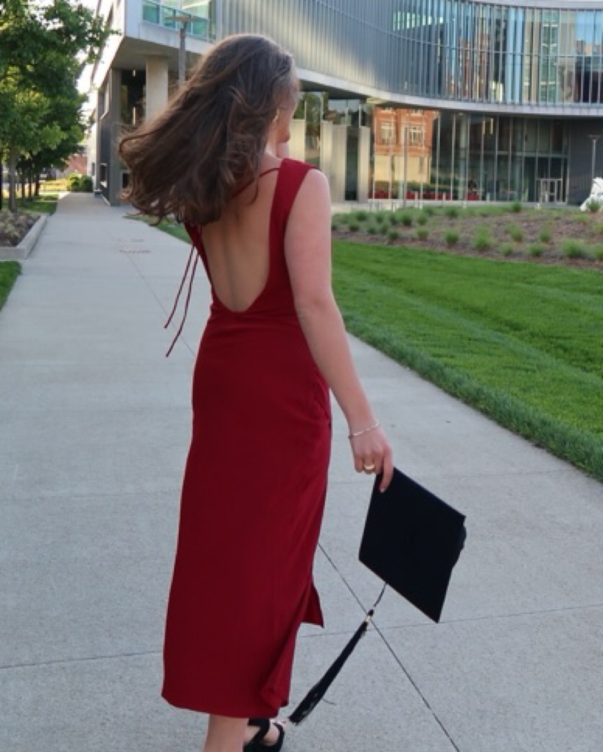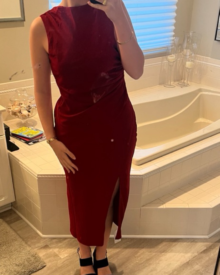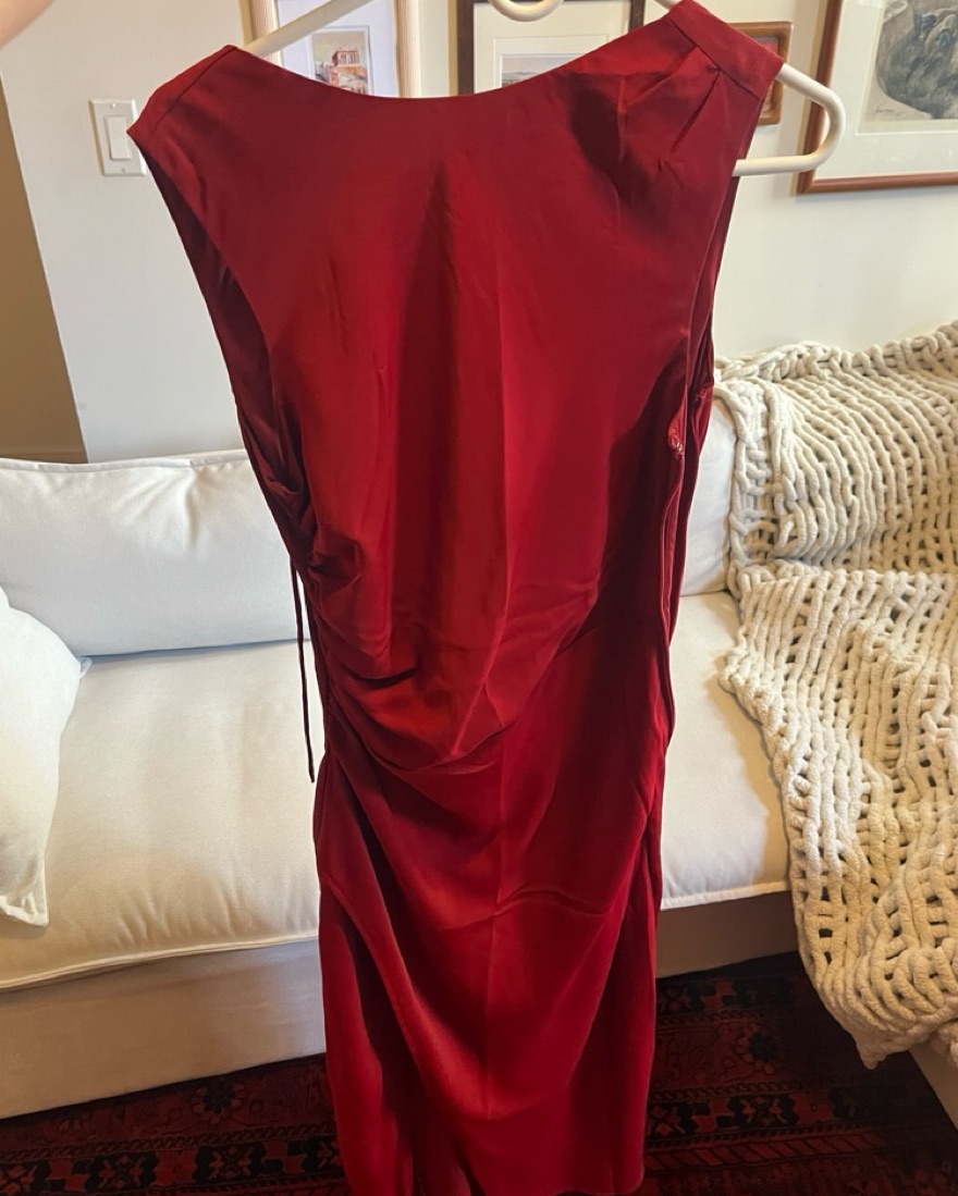 Open back midi red dress with tie detail. Double lined and good quality. Worn at company holiday party and graduation!
