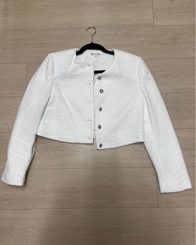 Elegant Textured Cropped Jacket by Reformation - Pickle