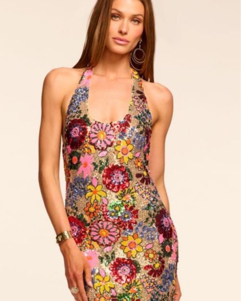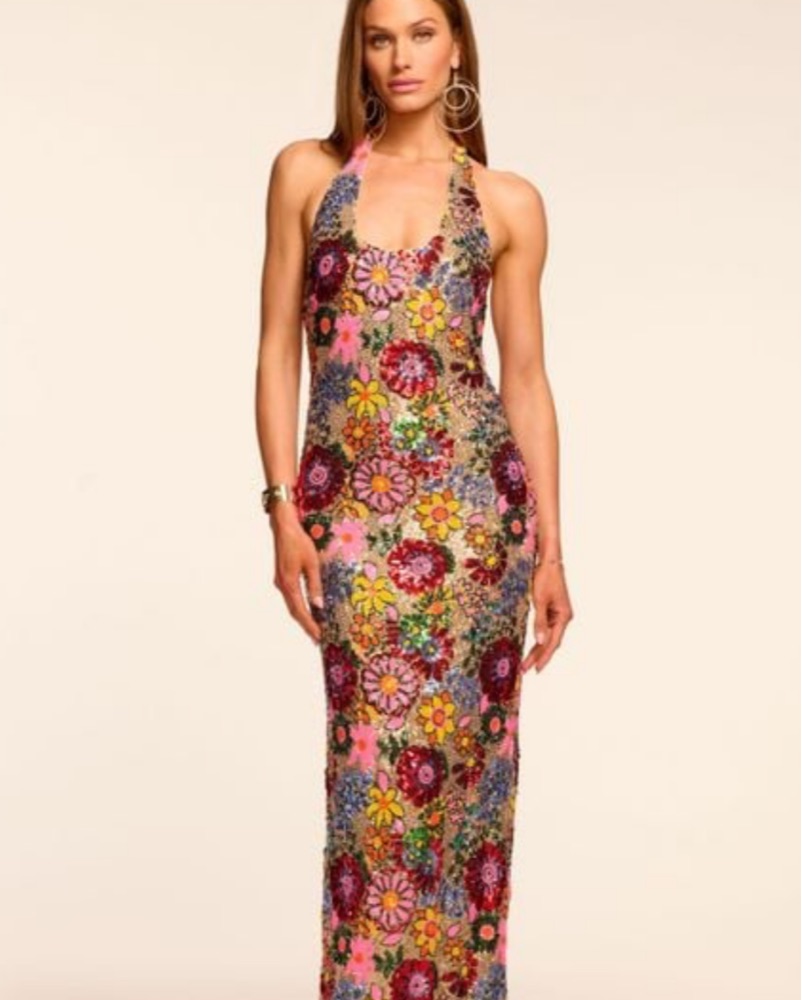 This stunning floral maxi dress is perfect for a summer garden party or outdoor wedding. The vibrant, eye-catching print and halter neckline create a flattering, feminine look.