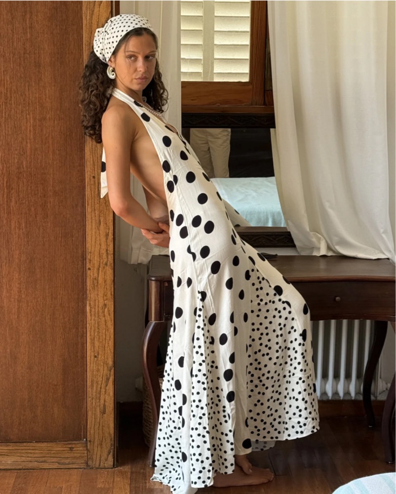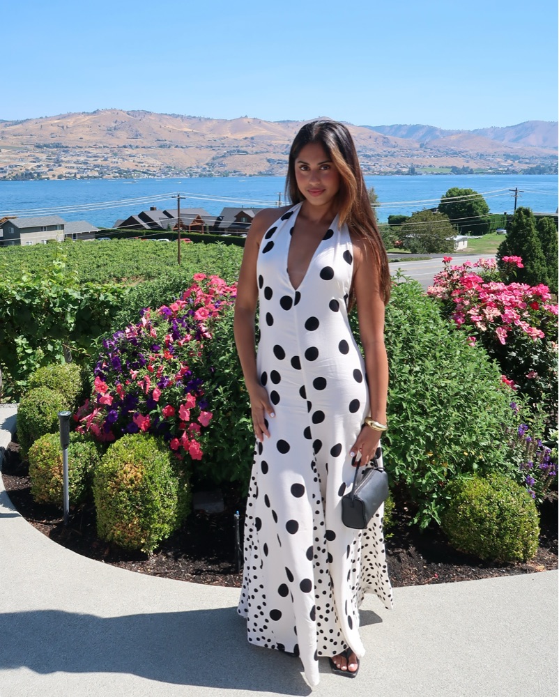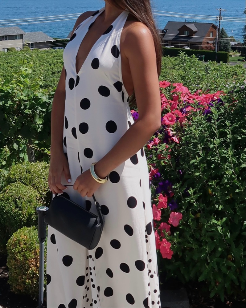 The most flattering halter tie polka dot dress with an open back! Please handle with care as she is one of my closet favorites <3 Please spot clean or dry clean only!