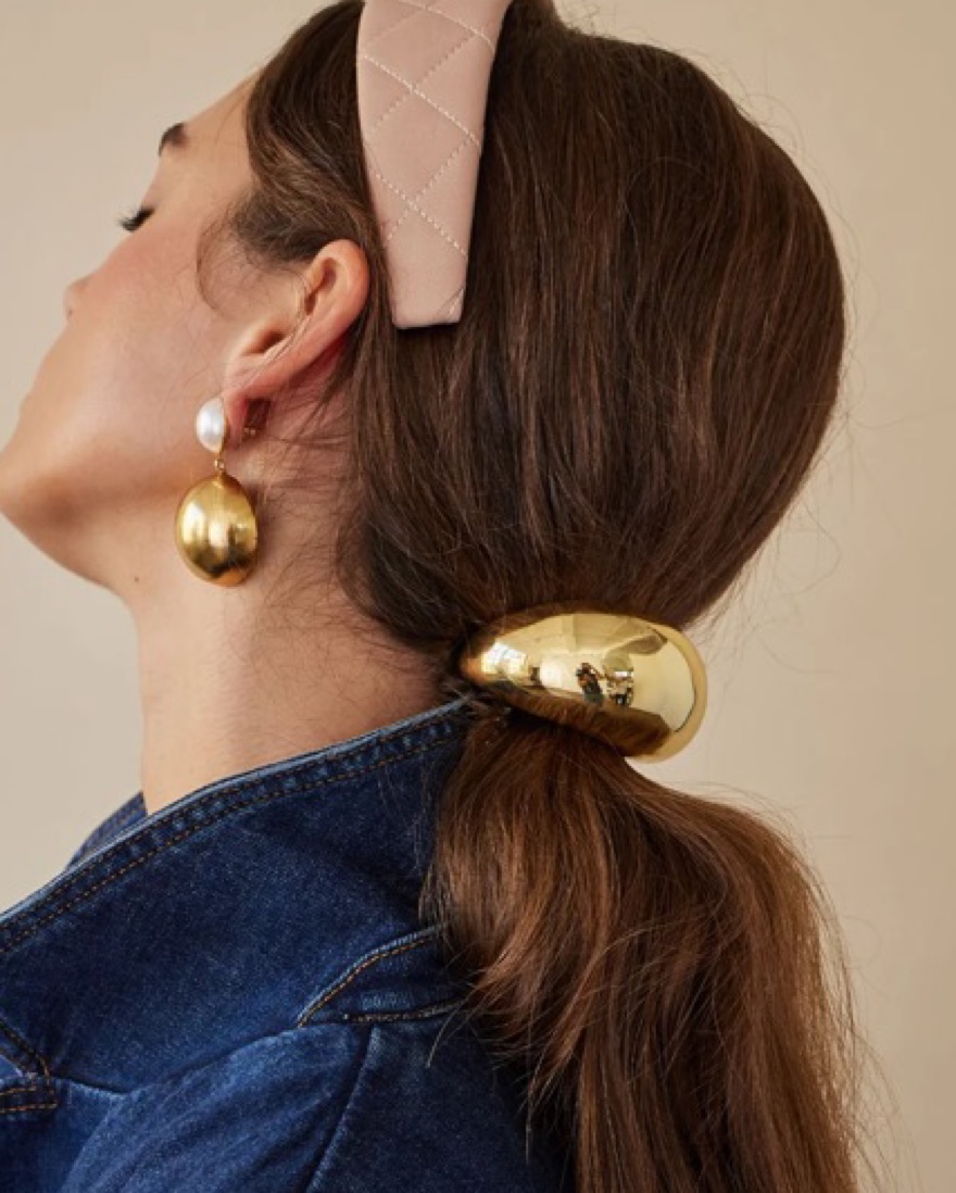 Lelet dome glossy pony cuff. Tags: statement earrings, gold earrings, wedding guest, black tie, gala, formal, rehearsal dinner, welcome party, cocktail party, engagement party, Zimmermann, Anna October, Staud, Cult Gaia, loveshackfancy, Self Portrait, cinq a sept, reformation, alice and olivia