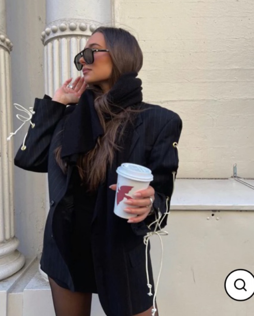 Amazing nazy pinstripe oversized blazer with rope tied detailing. This is a staple in my wardrobe and amazing to add a bit of fun to any basic outfit!