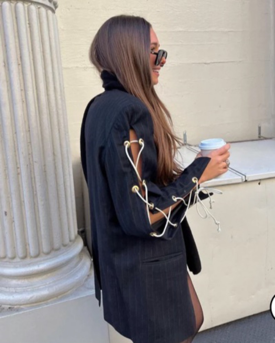Undone By Kate Lace Up Pinstripe Blazer by Undonebykate - Pickle