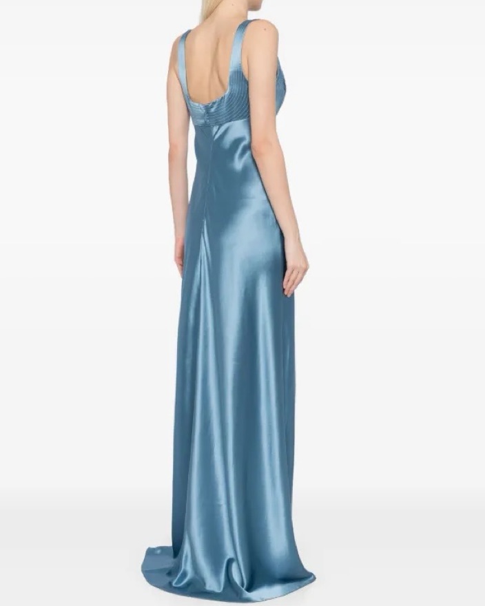Fagan Maxi Dress by Acler. French blue silky gown - empire waist cut close to body. Hemmed to 5’8 (5’4 in four inch heels). Acetate 76%, Polyester 24%. Worn once (and dry cleaned.)