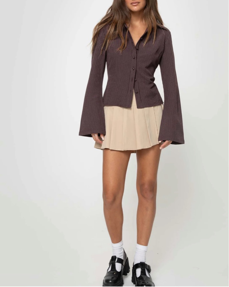Anni Pinstripe Top in Brown