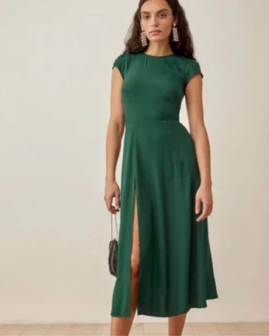 Reformation Gavin Dressin Green - a beautiful classy style with high slit