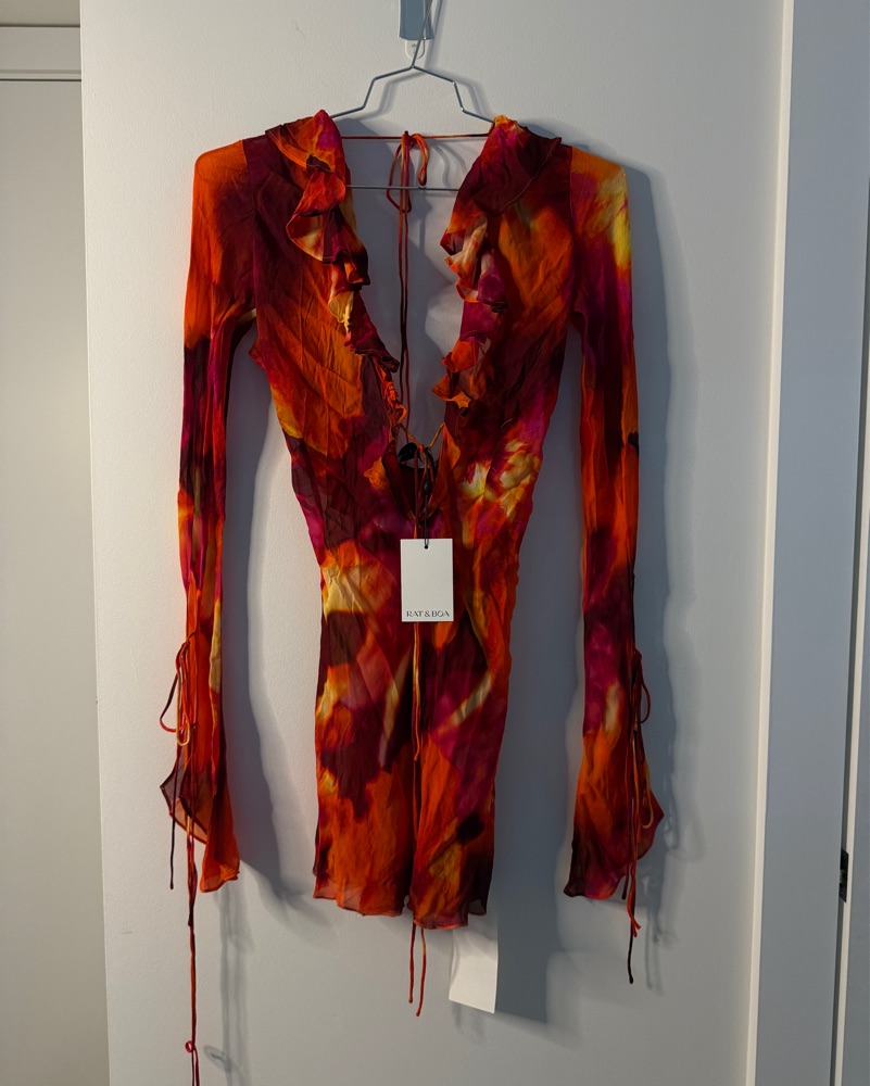 NWT - first renter can take off tags and wear. Red and orange long sleeve mini dress