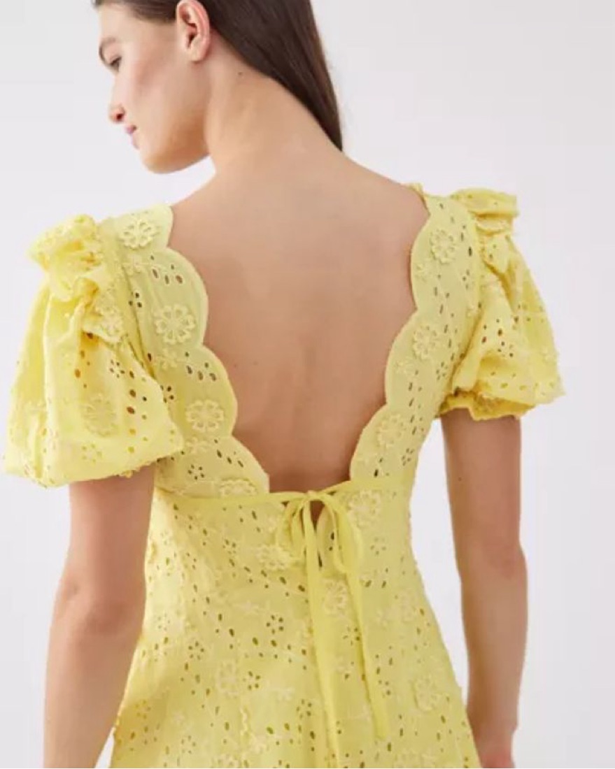 For Love & Lemons Natalia Puff Sleeve Dress in Lemon, size small