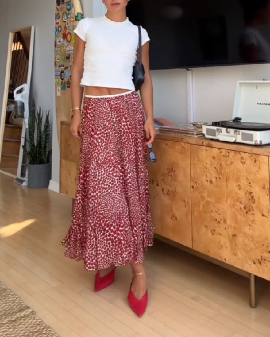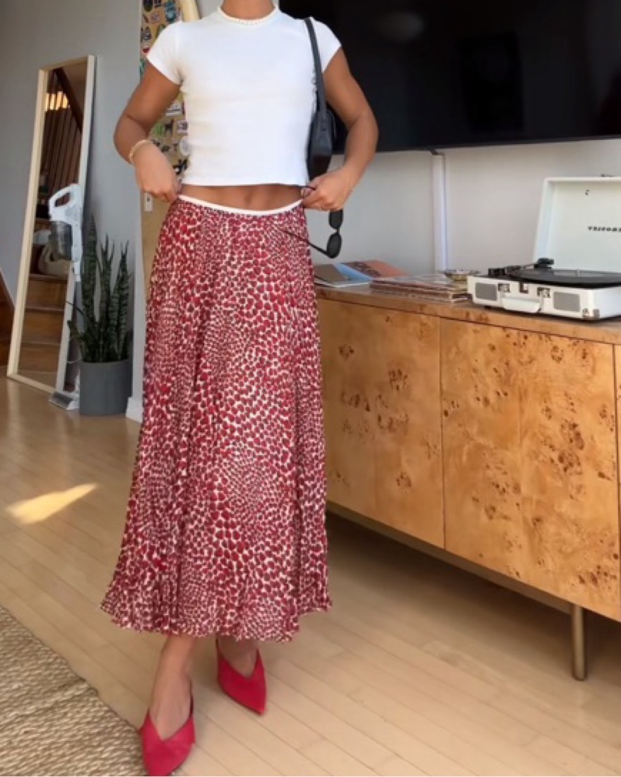 J Crew Gwyneth pleated skirt in strawberry swirl chiffon. Size XS